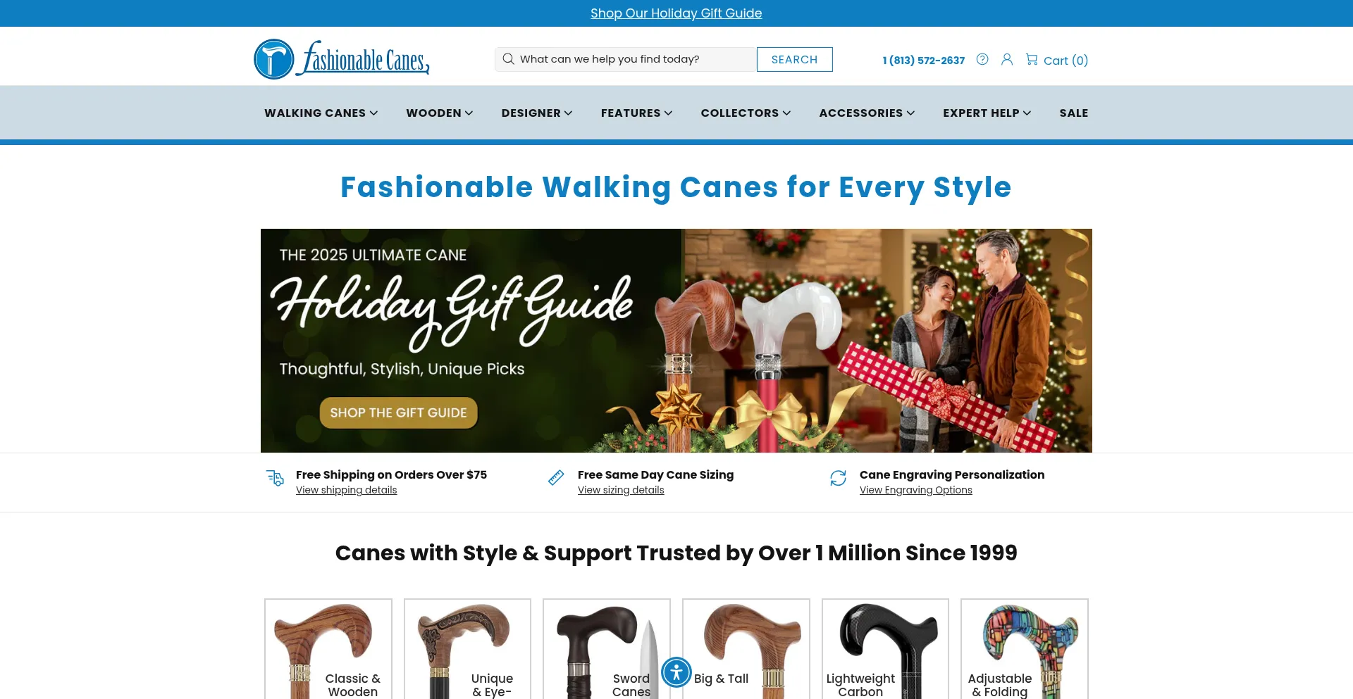 Shop stylish walking canes designed for comfort and support. Discover top-rated canes at Fashionable Canes. Classic, ergonomic, custom and handcrafted options.
