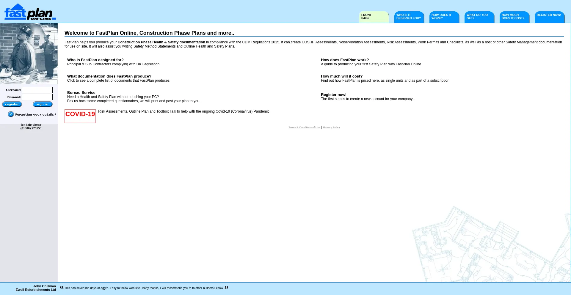FastPlan OnLine - Construction Phase Health and Safety Plans: COSHH, Noise and Risk Assessments, and all other On-Site Health and Safety Documentation.