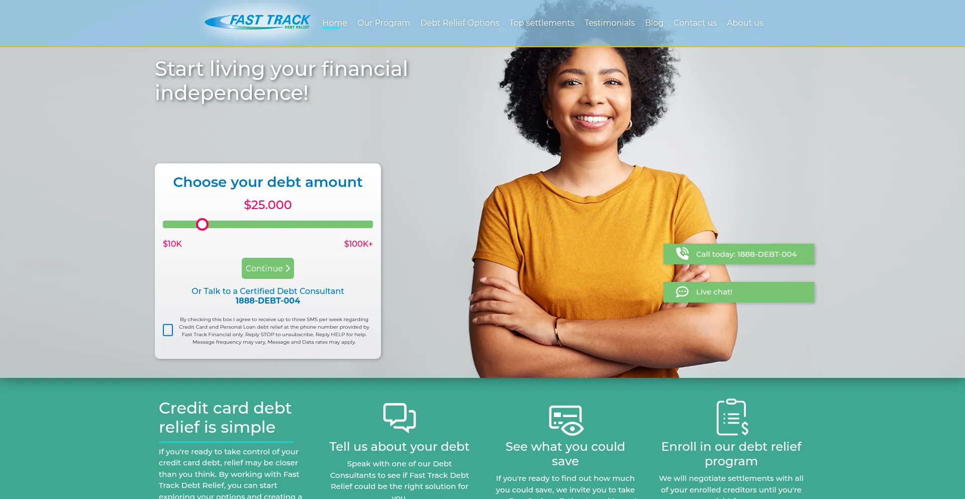 Fast Track Debt Relief is one of the nation’s leading provider of debt relief services. Get on the path towards total debt consolidation with Fast Track.