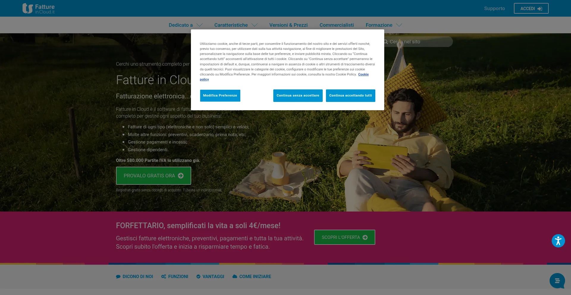 该网站实现符合GDPR或CCPA等隐私法规的cookie同意机制。这表明 fattureincloud.it 遵守数据保护标准并为用户提供对个人数据收集实践的控制。