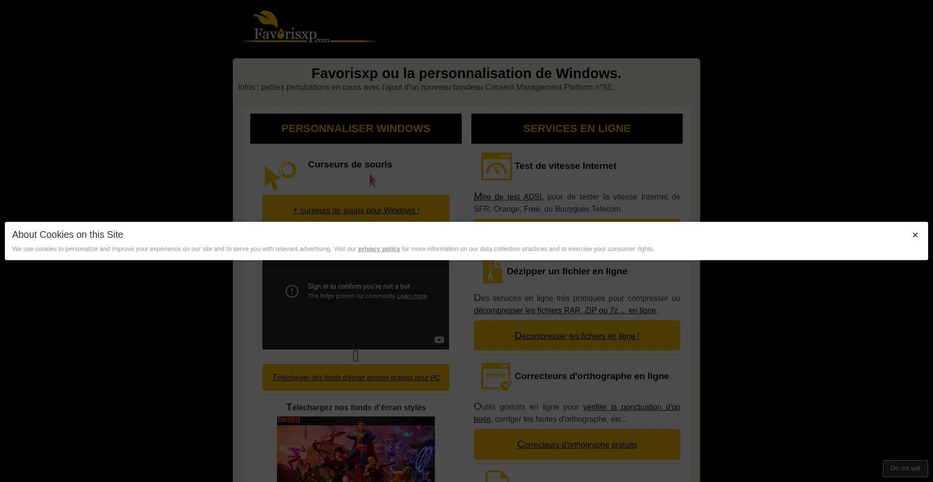 该网站实现符合GDPR或CCPA等隐私法规的cookie同意机制。这表明 favorisxp.com 遵守数据保护标准并为用户提供对个人数据收集实践的控制。