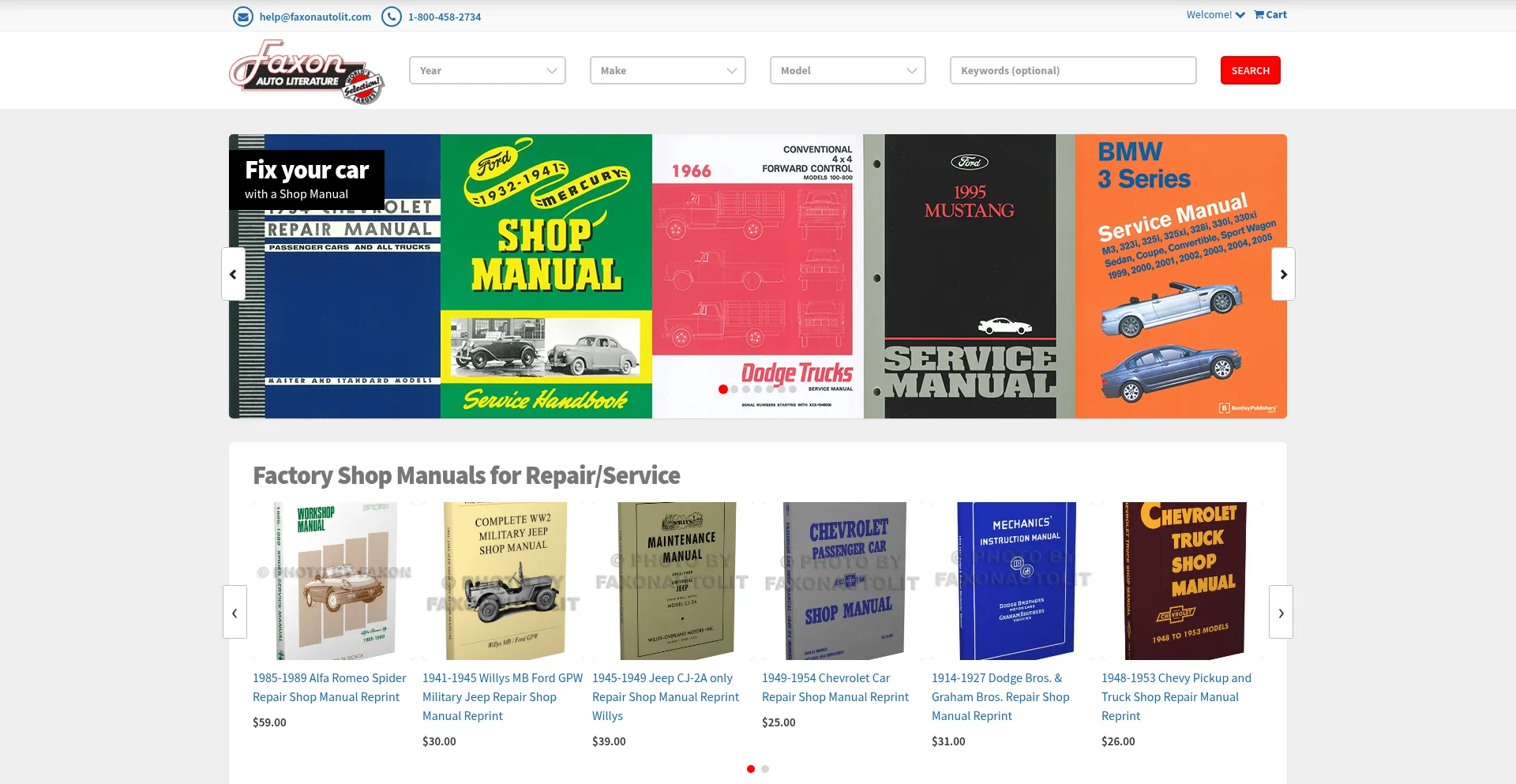 分析表明 faxonautoliterature.com 作为电子商务平台运营,促进商品或服务的在线交易。该网站实现了购物车功能、支付处理系统和产品目录功能,这些是商业零售运营的典型特征。