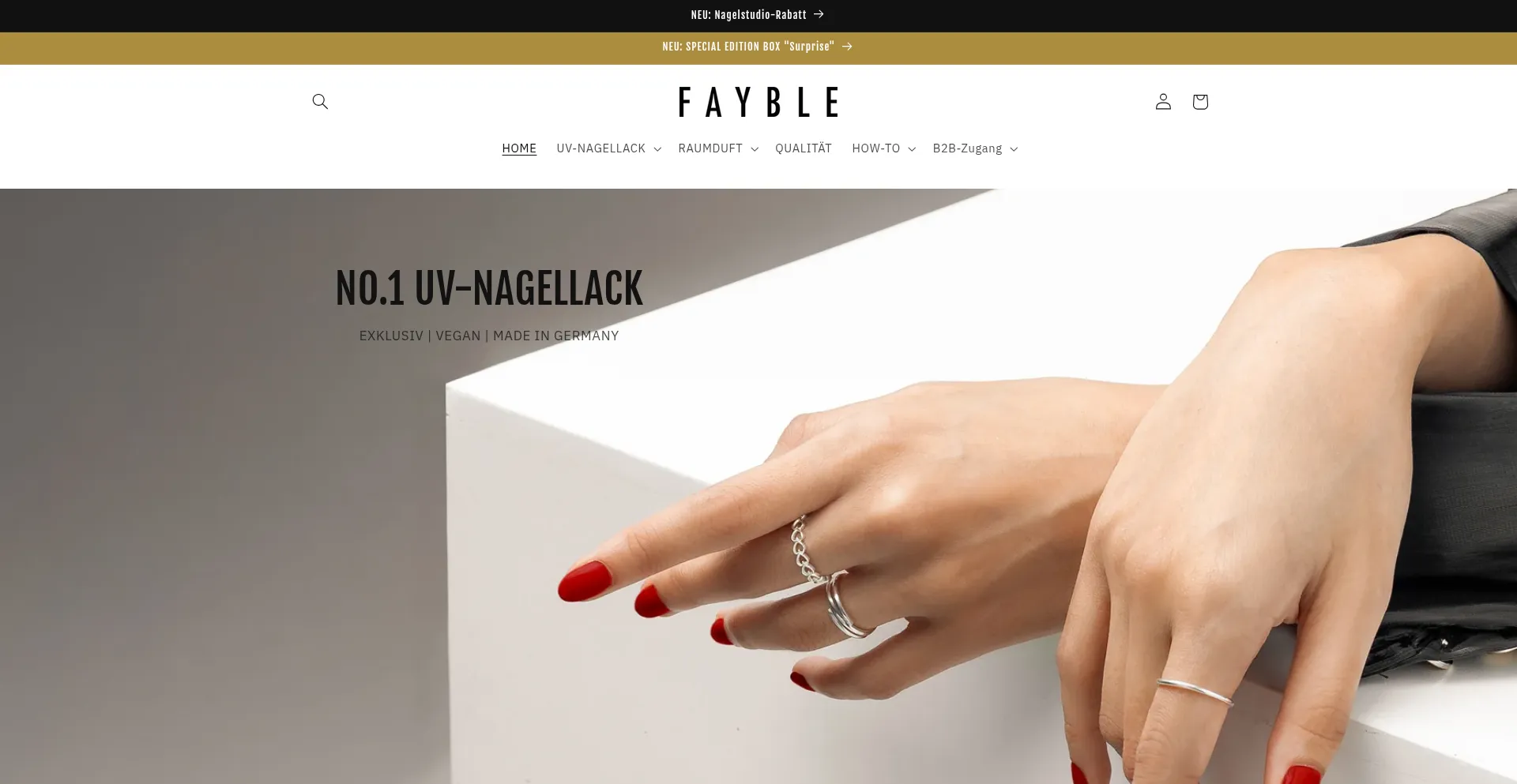 FAYBLE bietet exklusive UV-Nagellacke, vegan und Made in Germany mit einer Haltbarkeit von bis zu 28 Tagen. Ausserdem gibt es bei FAYBLE exklusive Raumdufte, entwickelt und prod...