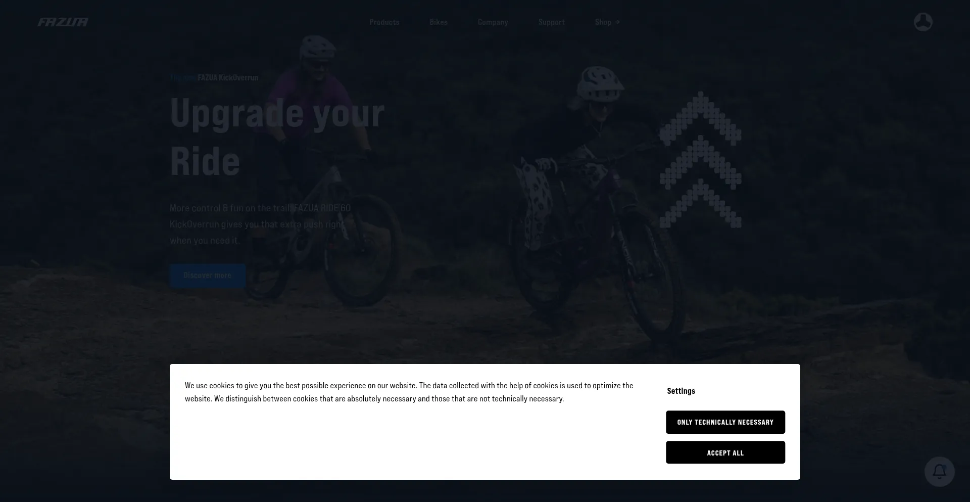 该网站实现符合GDPR或CCPA等隐私法规的cookie同意机制。这表明 fazua.com 遵守数据保护标准并为用户提供对个人数据收集实践的控制。