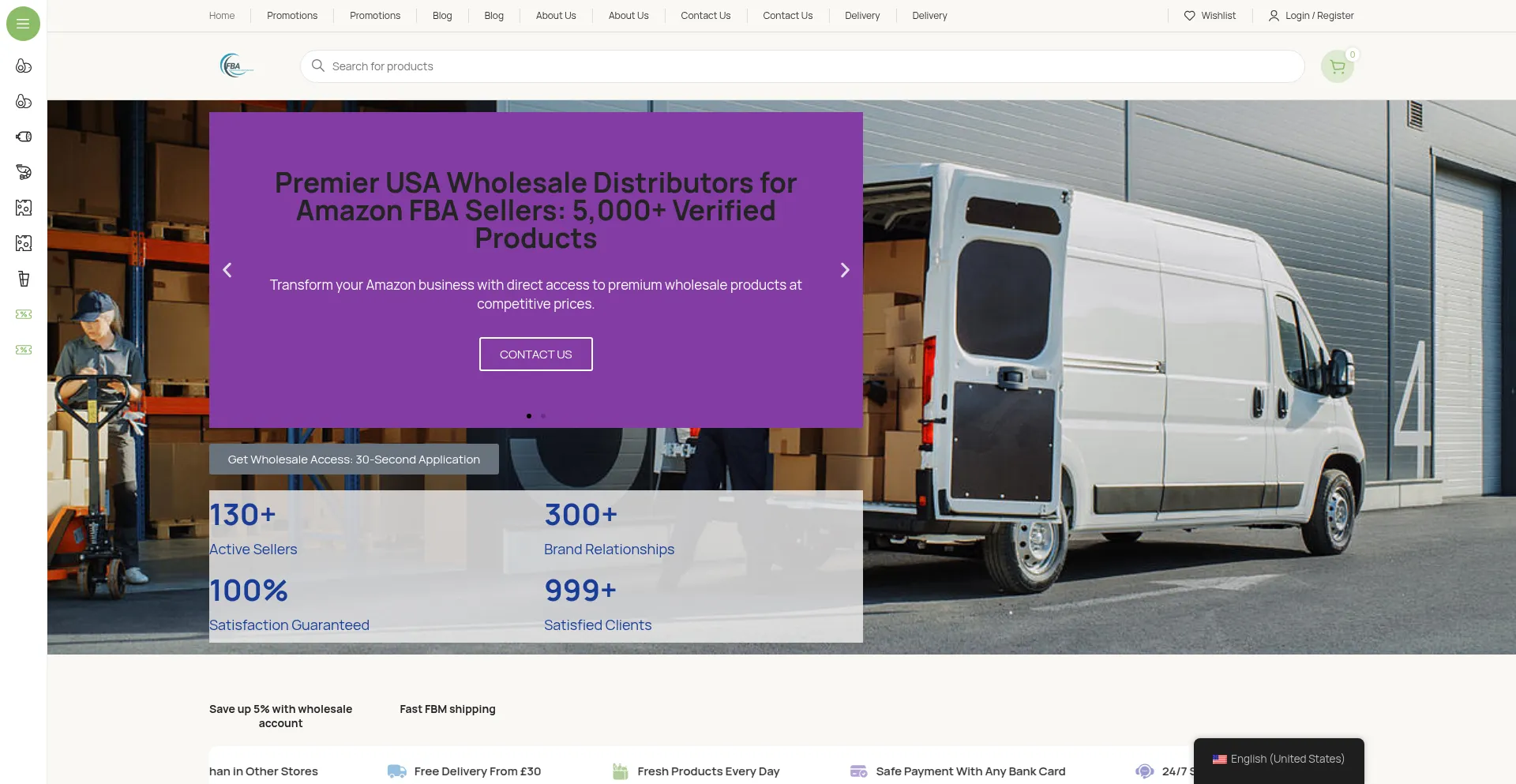 分析表明 fbawholesaledistributors.com 作为电子商务平台运营,促进商品或服务的在线交易。该网站实现了购物车功能、支付处理系统和产品目录功能,这些是商业零售运营的典型特征。