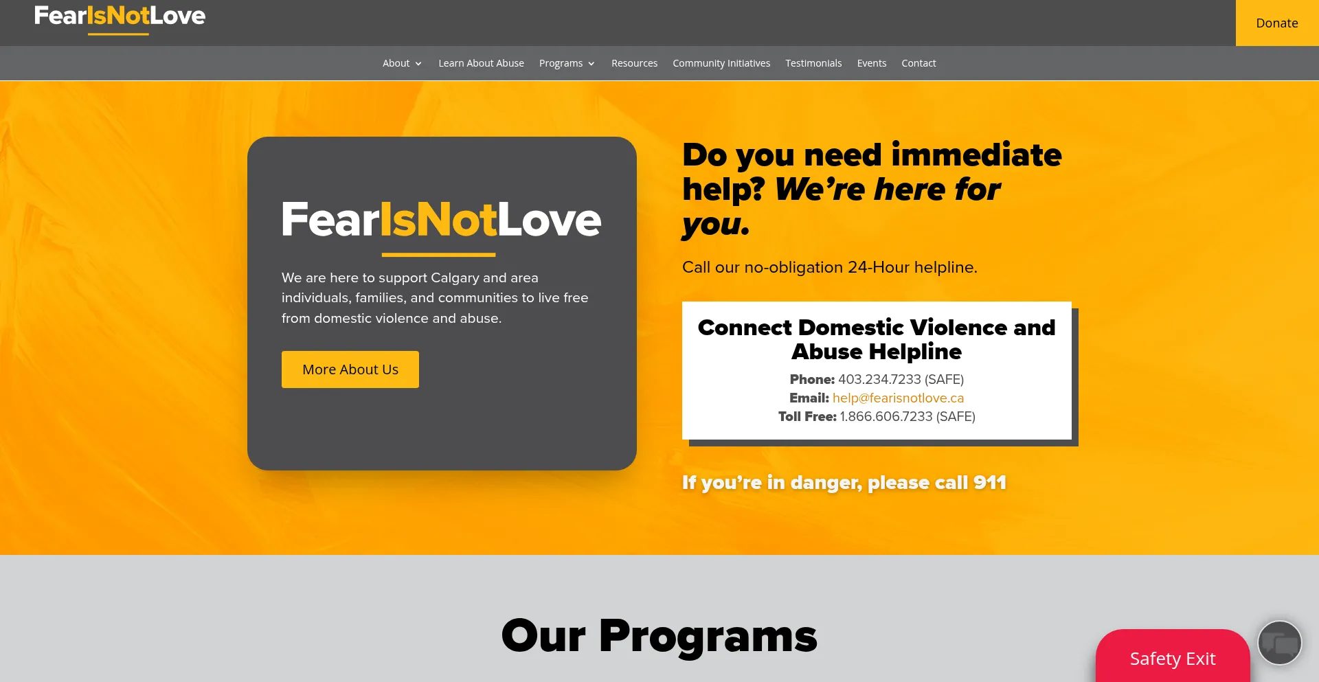 网站上存在社交媒体链接表明 fearisnotlove.ca 在社交媒体上维护官方账户,这是可信度和参与度的积极信号。