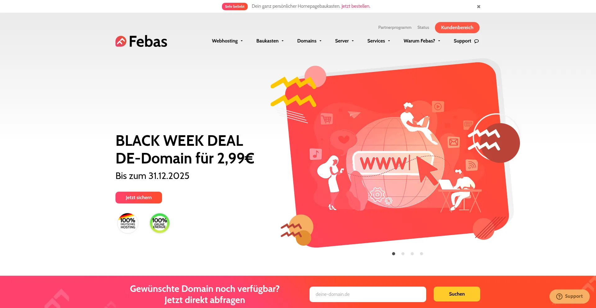 Willkommen bei Febas, deinem Experten für SSD Webhosting, Domains, vServer und individuelle Hosting-Lösungen zu fairen Preisen.