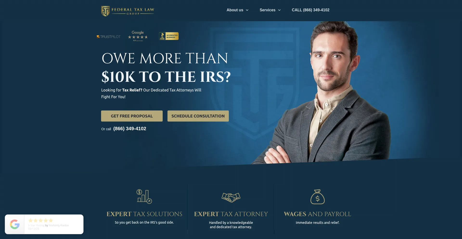 帮助保护他人,快在社交媒体上分享此页面吧!知道federaltaxlawgroup.com的人越多,骗子就越难得逞。 通过在社交媒体上分享此页面,帮助更多人发现可靠的federaltaxlawgroup.com吧!