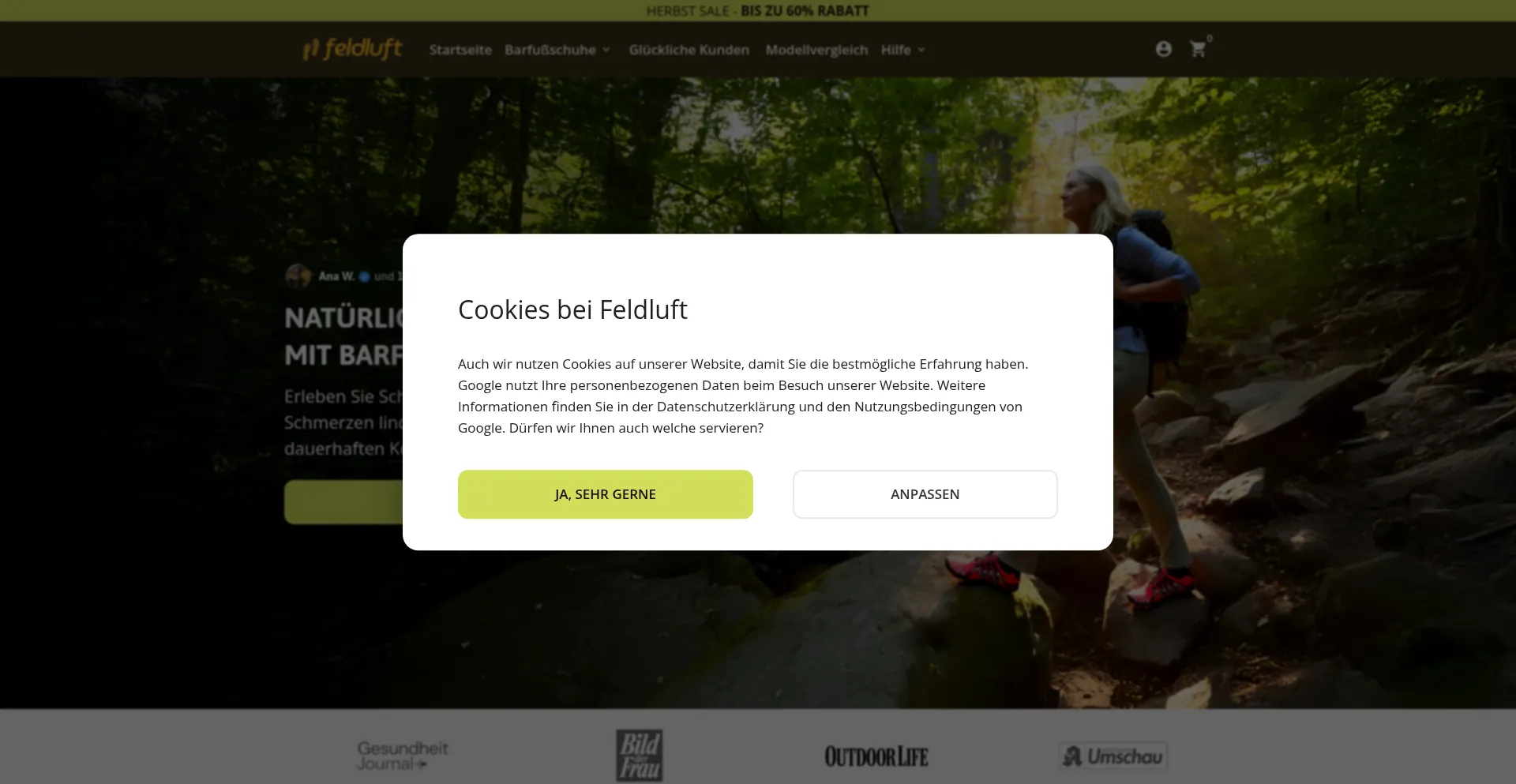 该网站实现符合GDPR或CCPA等隐私法规的cookie同意机制。这表明 feldluft.de 遵守数据保护标准并为用户提供对个人数据收集实践的控制。