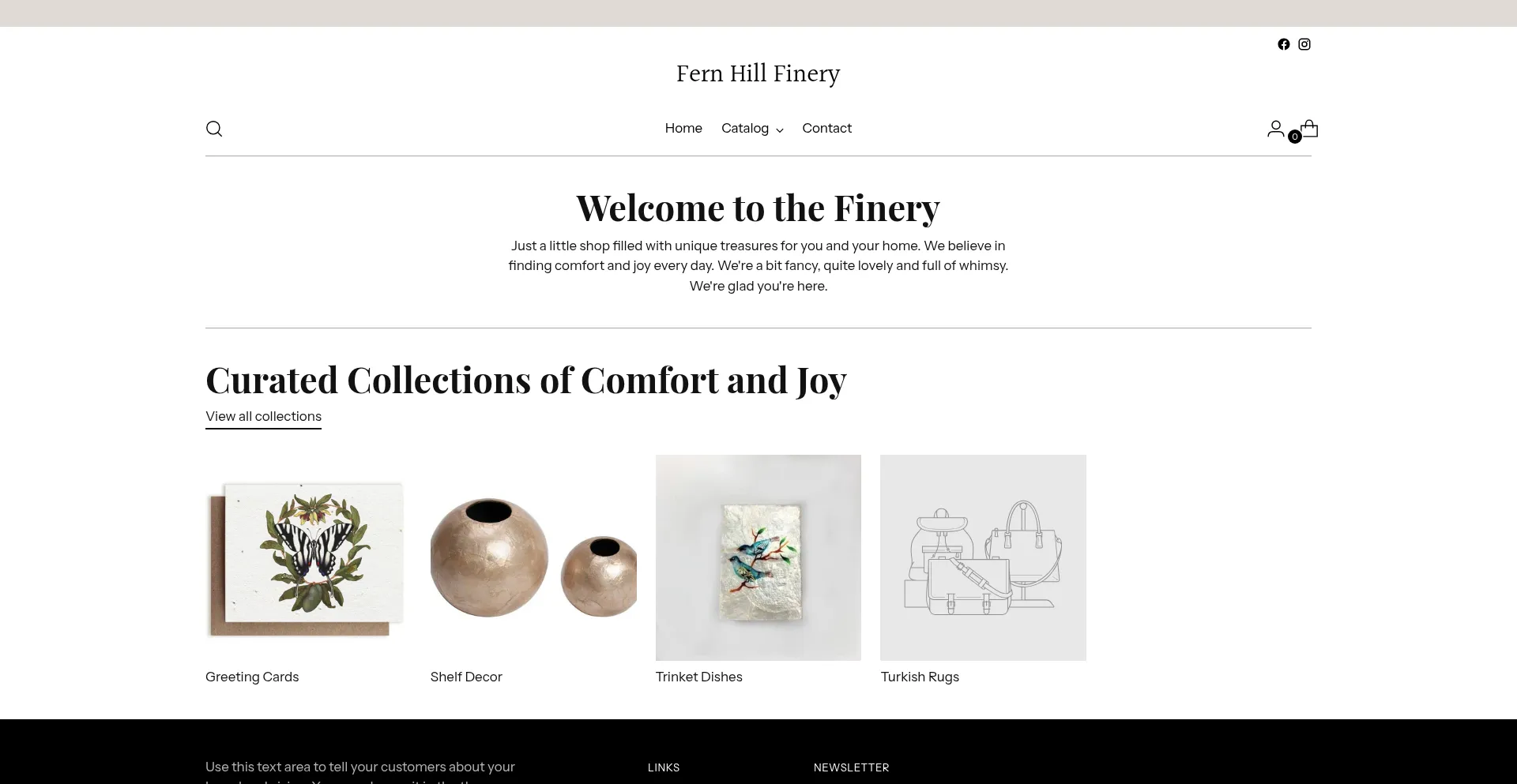 网站 fernhillfinery.com 使用免费电子商务平台解决方案,这可能表明成本意识运营,但也可能暗示与企业级解决方案相比在安全功能、客户支持或高级功能方面的限制。