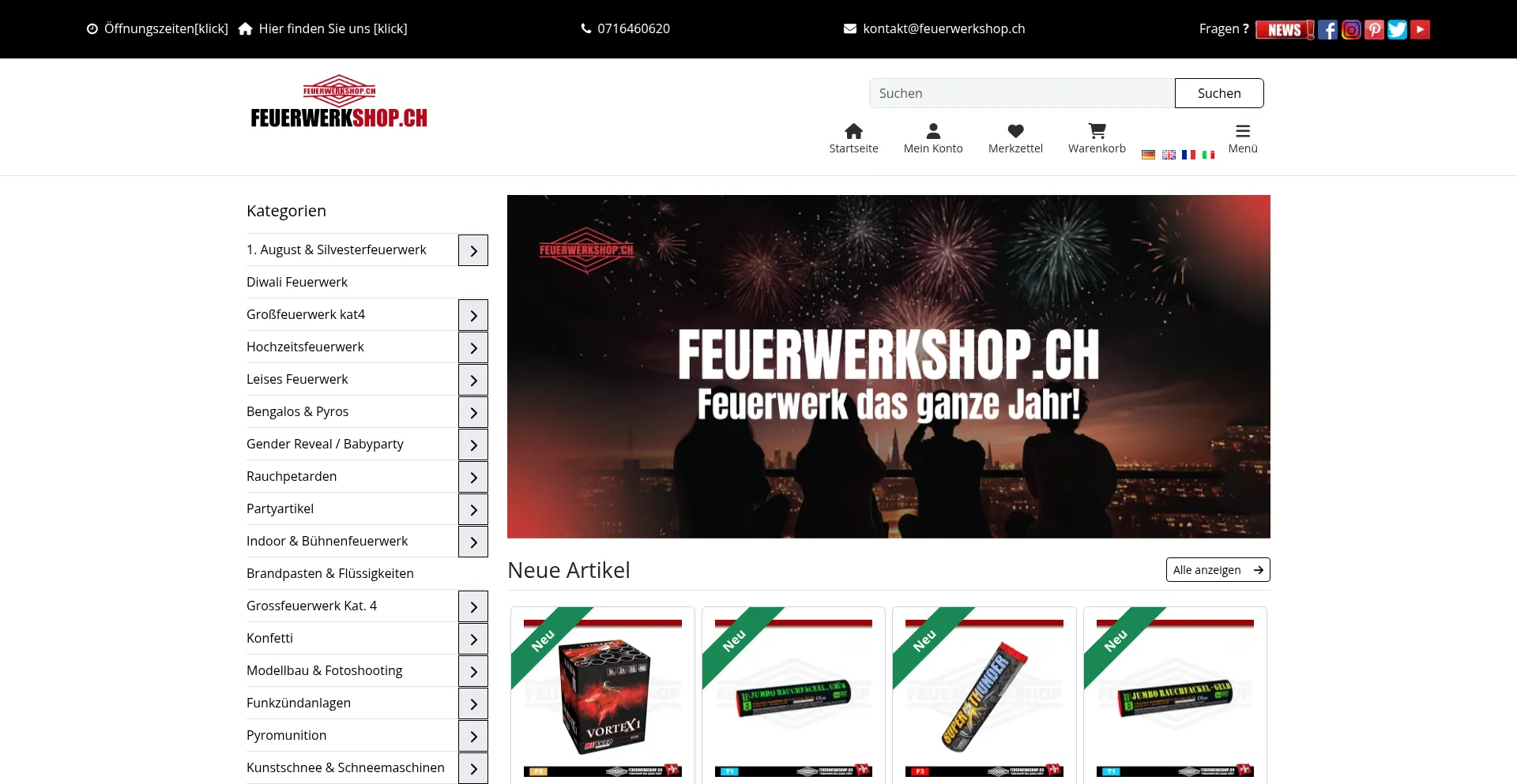 Pyroshop, Pyrotechnik, Feuerwerk Shop für Silvester & 1. August Schweiz - Batteriefeuerwerk - Raketen - Rauchpulver - Seenotfackel