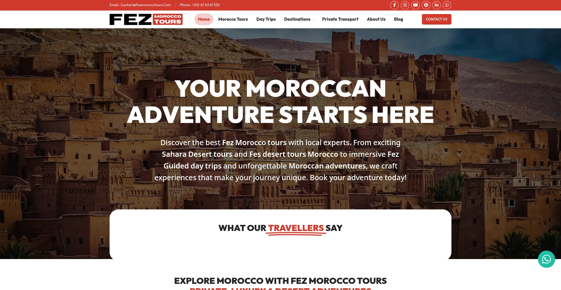 网站上存在社交媒体链接表明 fezmoroccotours.com 在社交媒体上维护官方账户,这是可信度和参与度的积极信号。