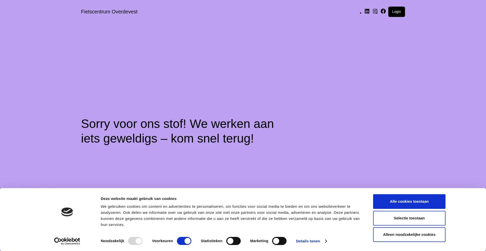 该网站实现符合GDPR或CCPA等隐私法规的cookie同意机制。这表明 fietscentrum.nl 遵守数据保护标准并为用户提供对个人数据收集实践的控制。