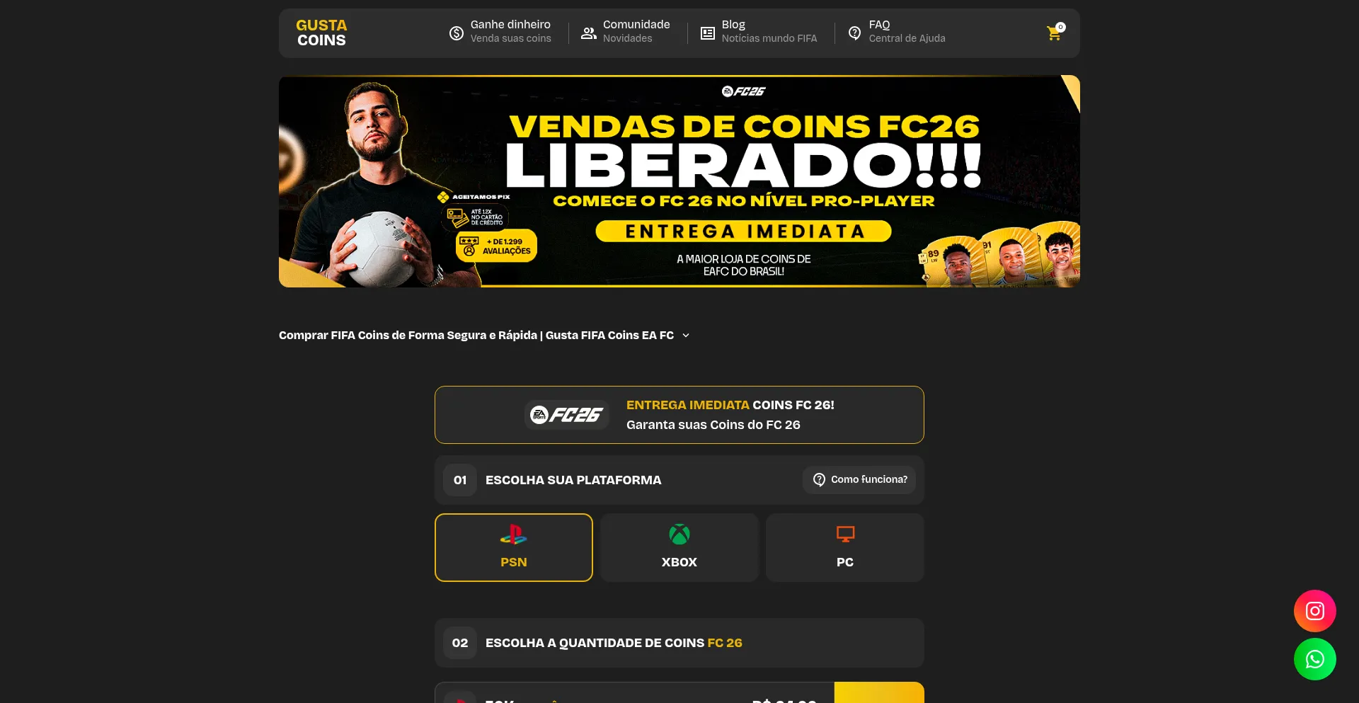 网站上存在社交媒体链接表明 fifagustacoins.com.br 在社交媒体上维护官方账户,这是可信度和参与度的积极信号。
