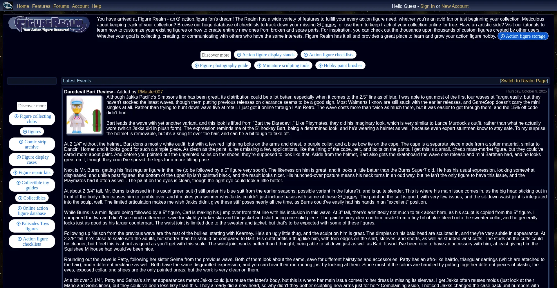 Action figure resource with checklists, galleries, customs, tutorials, and a friendly community for collecting modern or vintage action figures and customizing your own figures.