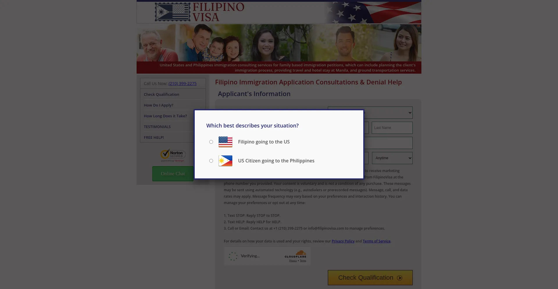 该网站实现数据收集表单,请求个人信息,包括姓名、电子邮件地址、电话号码或其他敏感详细信息。用户应验证 filipinovisa.com 的合法性并在提交个人数据前查看隐私政策。