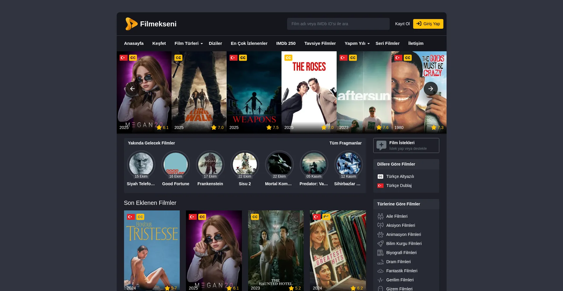 Film Ekseni ⚡️ Vizyonda ki, en güncel ve en yeni filmleri full hd kalitesinde türkçe dublaj ve altyazı seçenekleriyle 1080p olarak izleyebileceğiniz adresiniz.