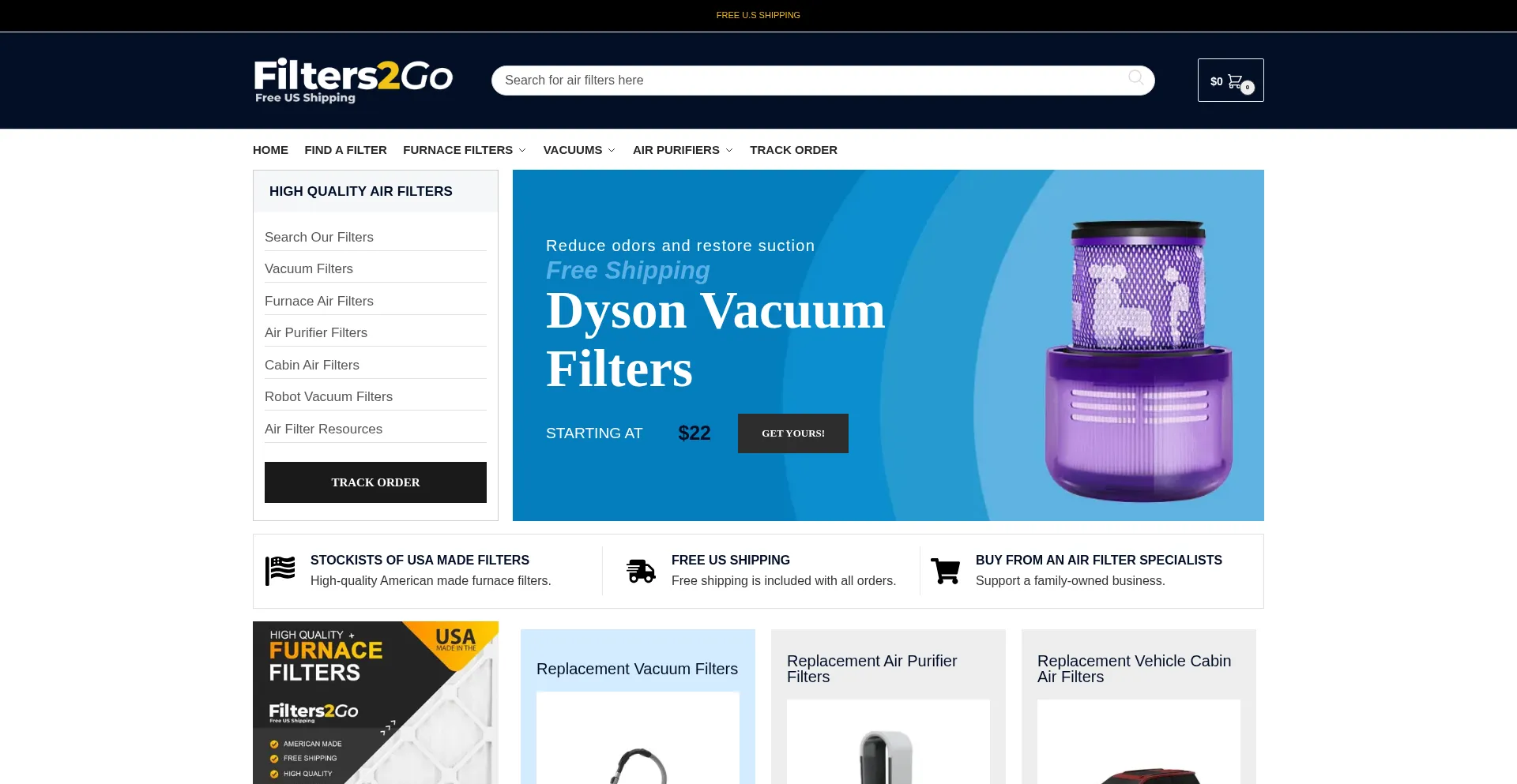 A large range of air filters for your vacuum, air purifier, furnace, air conditioner and vehicle. Shop now and get free US shipping.
