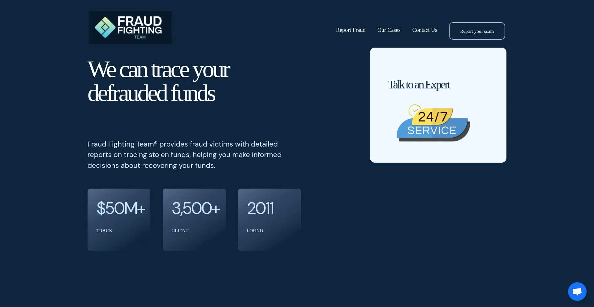 Fraud Fighting Team We can trace your stolen funds. Fraud Fighting Team® provides fraud victims with detailed reports on tracing stolen funds, helping you make informed decisions about recovering your funds.