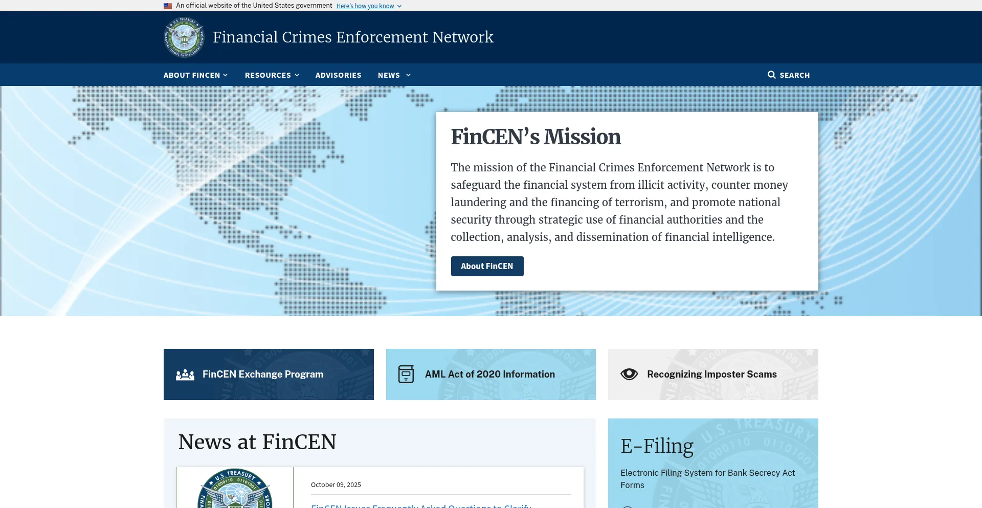 United States Department of the Treasury Financial Crimes Enforcement Network - Home | FinCEN.gov