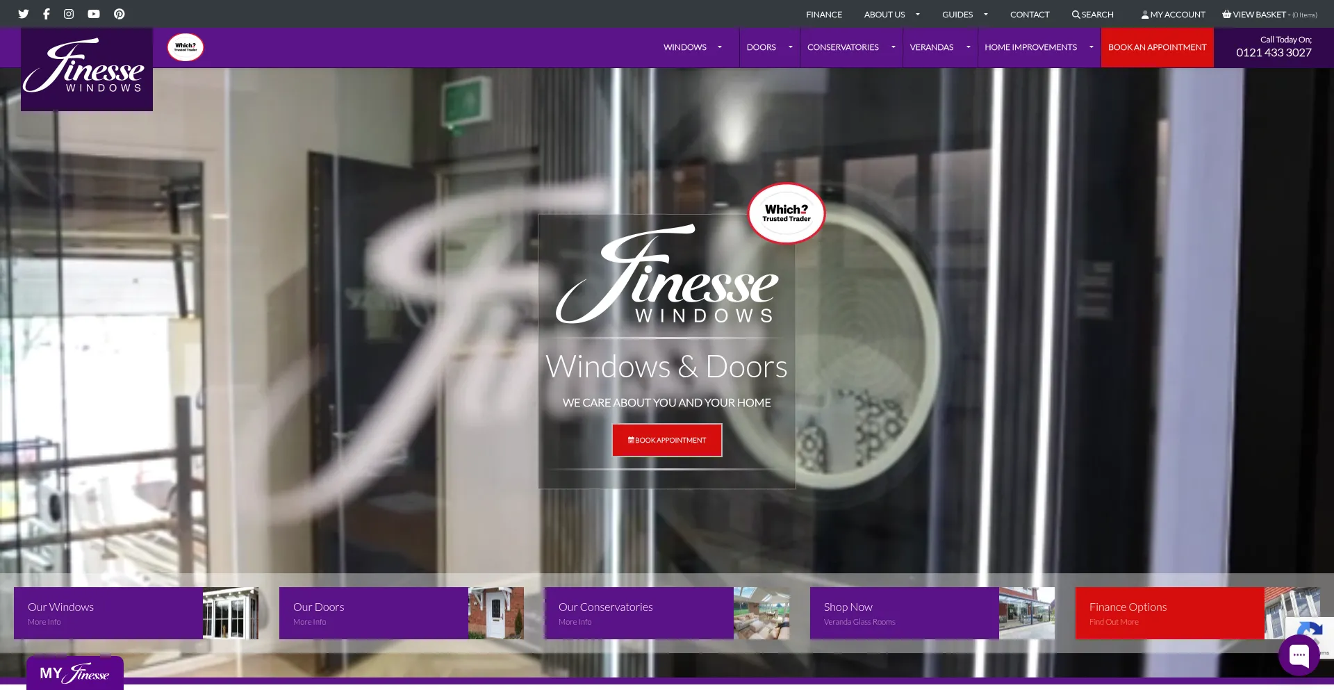 网站上存在社交媒体链接表明 finesse-windows.co.uk 在社交媒体上维护官方账户,这是可信度和参与度的积极信号。