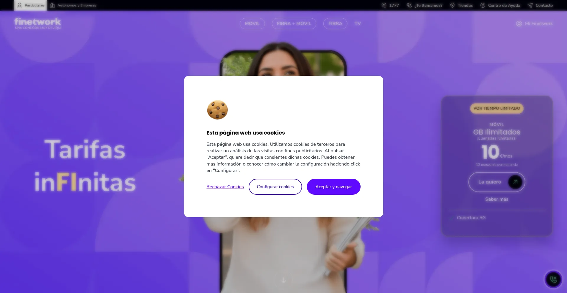 En Finetwork tenemos las tarifas de móvil, internet de fibra óptica y WiFi que estás buscando. Entra ya y descúbrelas, ¡son muy de aquí!