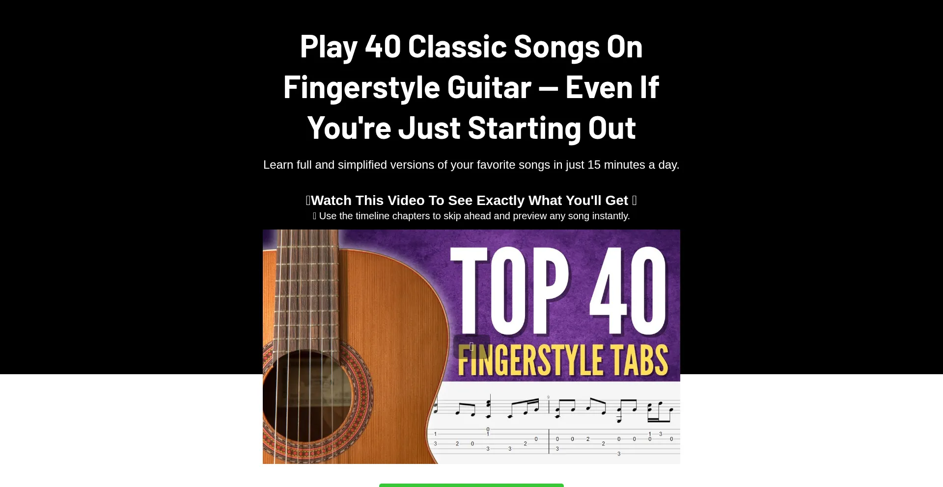 Download 40 classic fingerstyle songs in PDF and Guitar Pro format. Includes easy and full versions. Perfect for beginners and returning players.