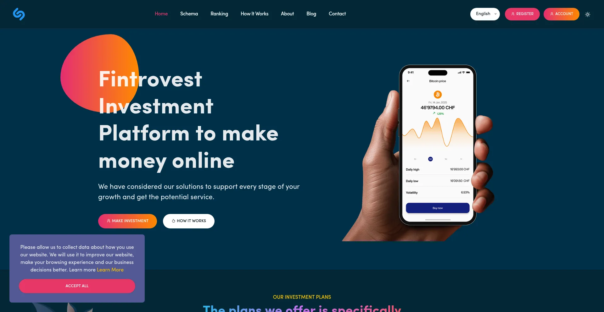 fintrovest.com 使用 Bootstrap,这是一个广泛采用的开源响应式网页开发框架。Bootstrap 通过标准化组件和样式实现移动友好界面的高效创建。