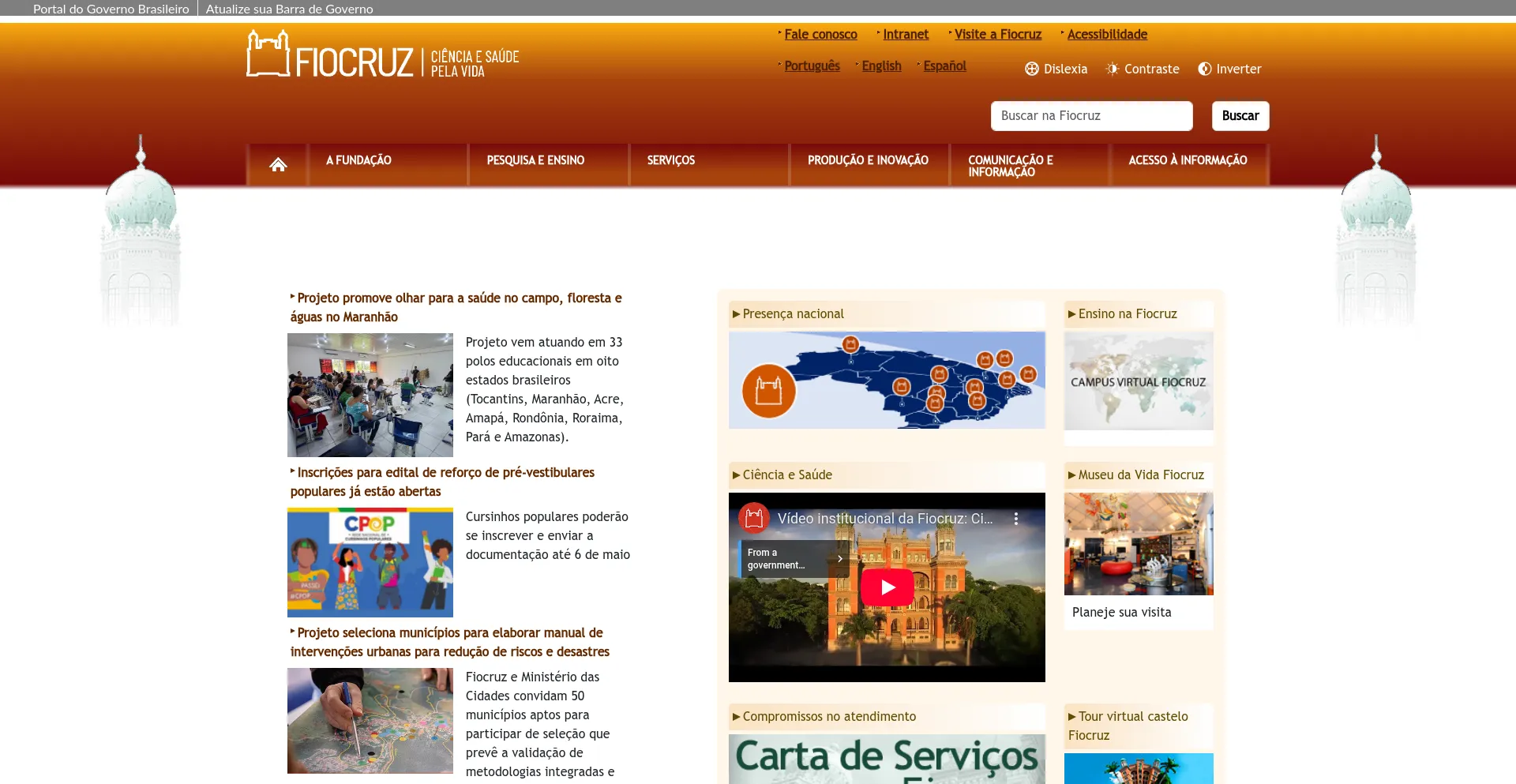 网站上存在社交媒体链接表明 fiocruz.br 在社交媒体上维护官方账户,这是可信度和参与度的积极信号。