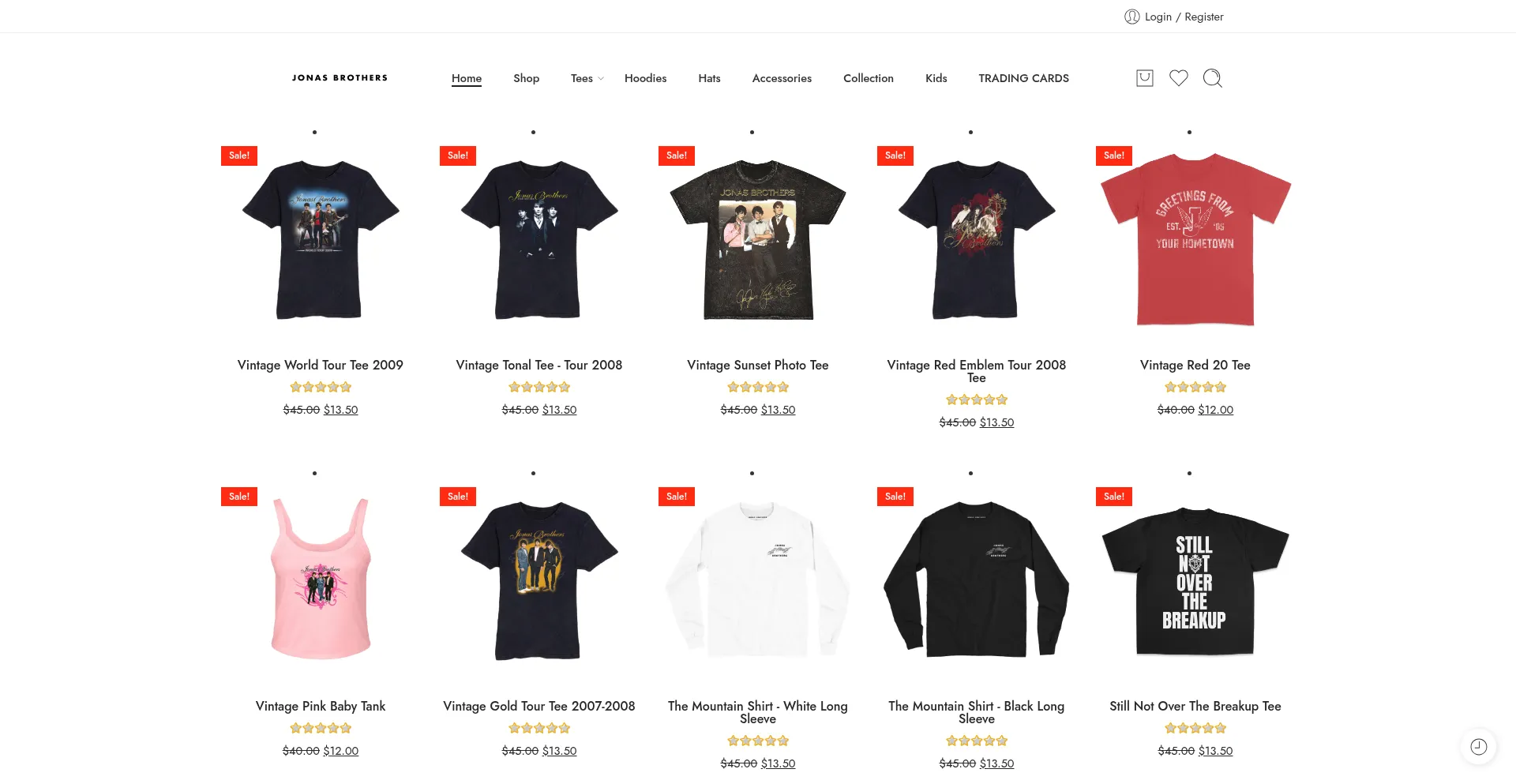 Shop official Jonas Brothers merch, including music, T-shirts, and a full range of clothing and accessories.