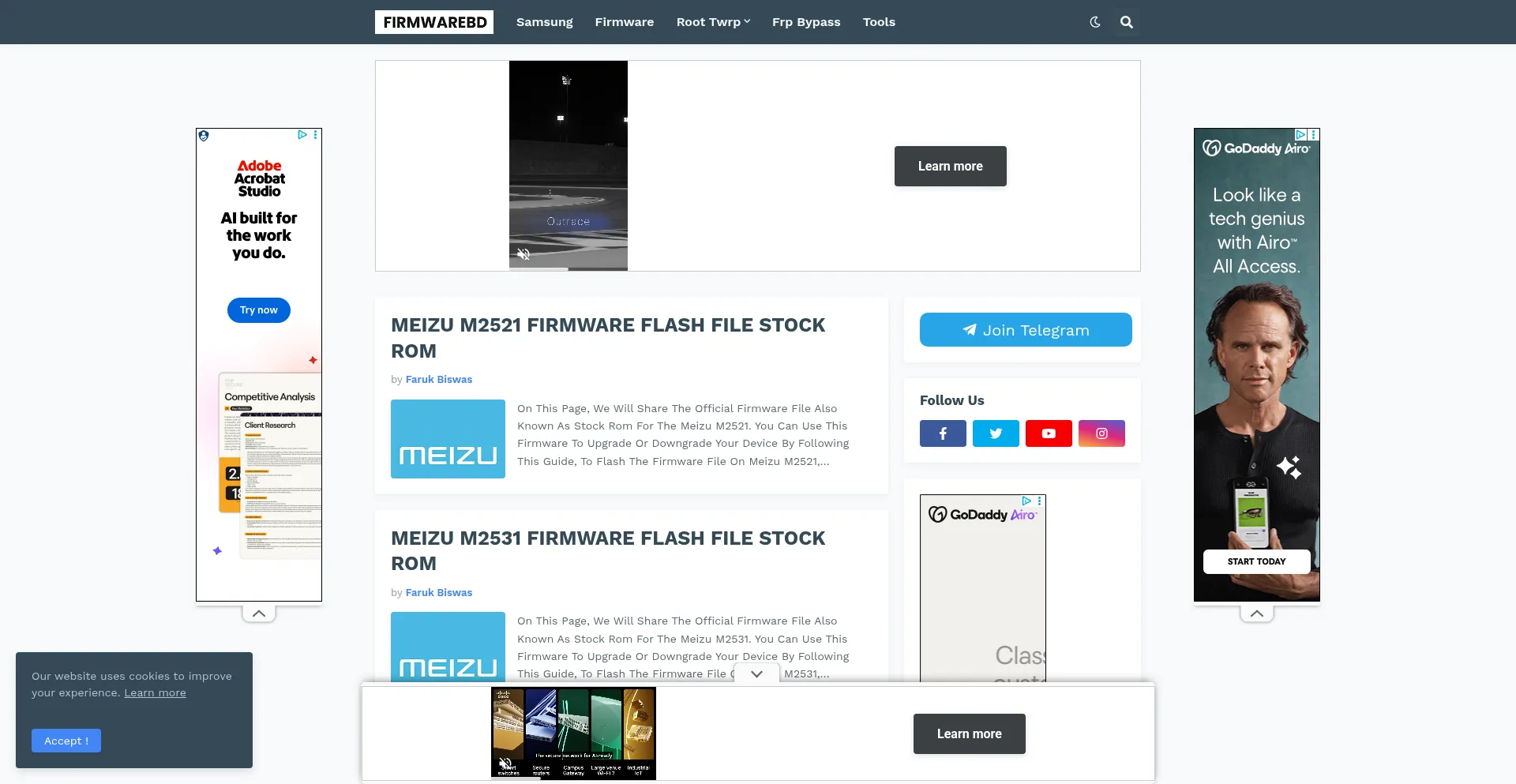 网站上存在社交媒体链接表明 firmwarebd.com 在社交媒体上维护官方账户,这是可信度和参与度的积极信号。