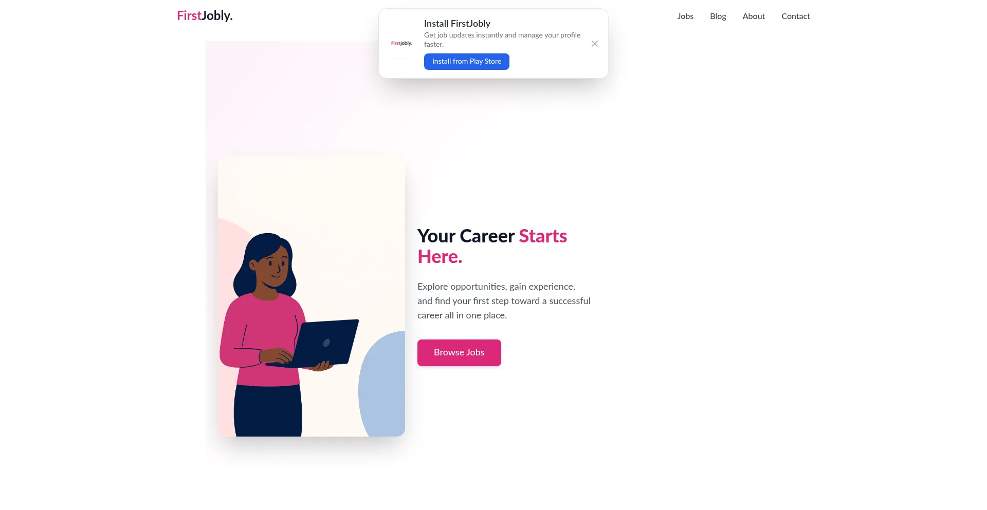 firstjobly.co.za 提供 Android 设备移动应用程序,表明平台存在已扩展到网络服务之外。