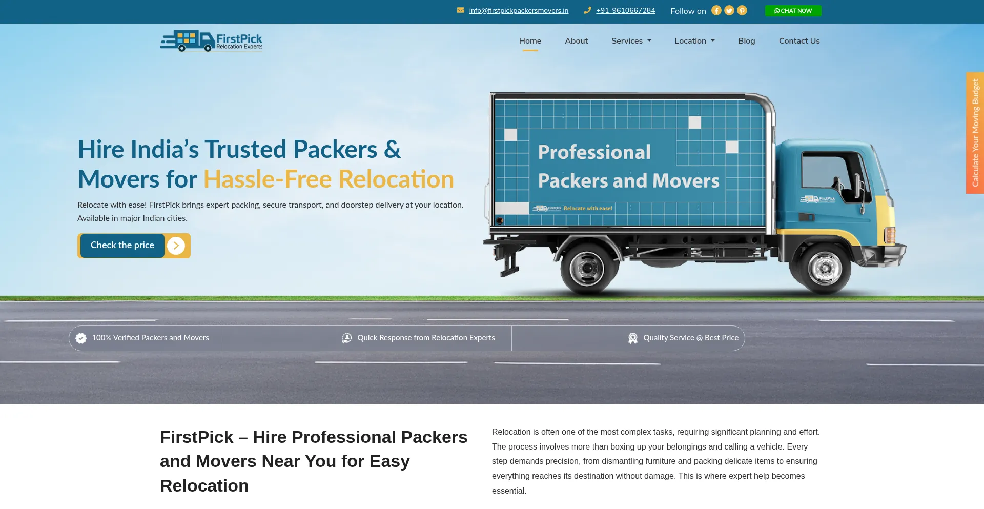 网站上存在社交媒体链接表明 firstpickpackersmovers.in 在社交媒体上维护官方账户,这是可信度和参与度的积极信号。