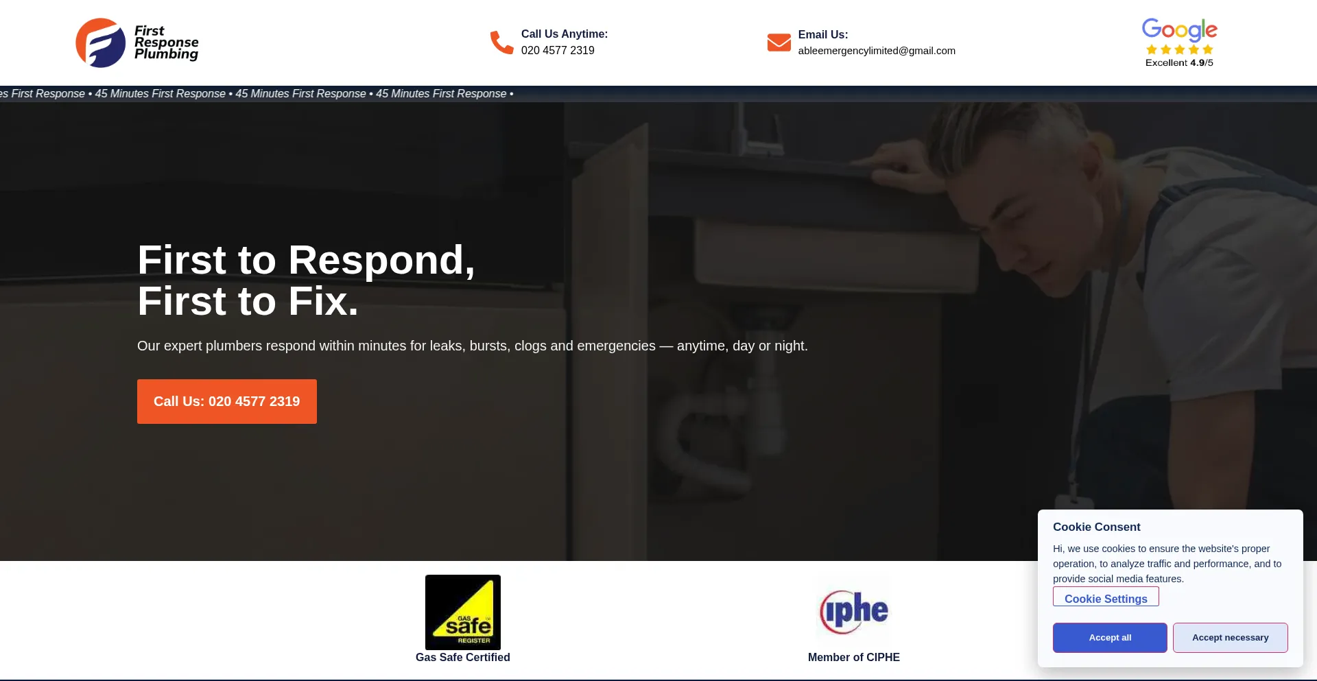 该网站实现符合GDPR或CCPA等隐私法规的cookie同意机制。这表明 firstresponseplumbing.co.uk 遵守数据保护标准并为用户提供对个人数据收集实践的控制。
