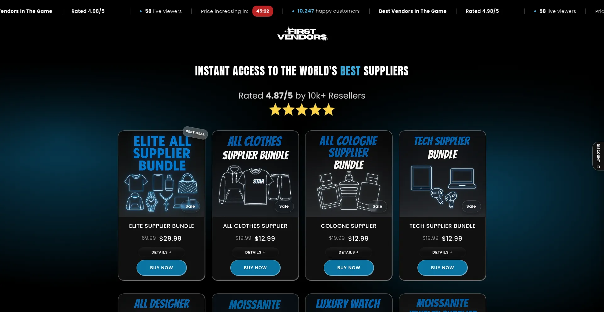 该网站利用流行产品名称和品牌来吸引流量并产生用户兴趣。这些产品可能通过促销活动或折扣策略提供,旨在增加 firstvendors.net 的访客参与度和转化率。