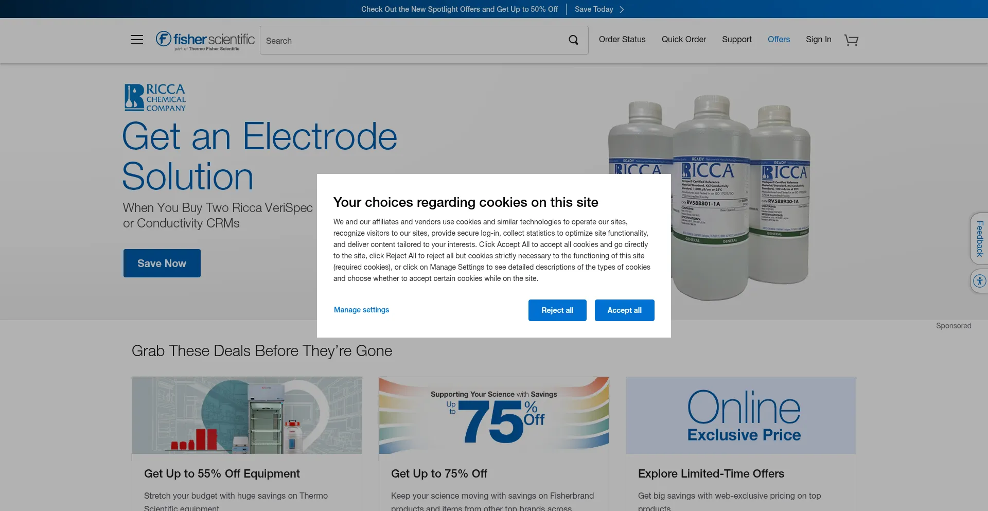 该网站显示来自认可机构的安全认证或信任印章,表明符合安全标准、数据保护协议或行业法规。来自 fisherscientific.com 的信任印章表明遵守已建立的安全实践和运营透明度。