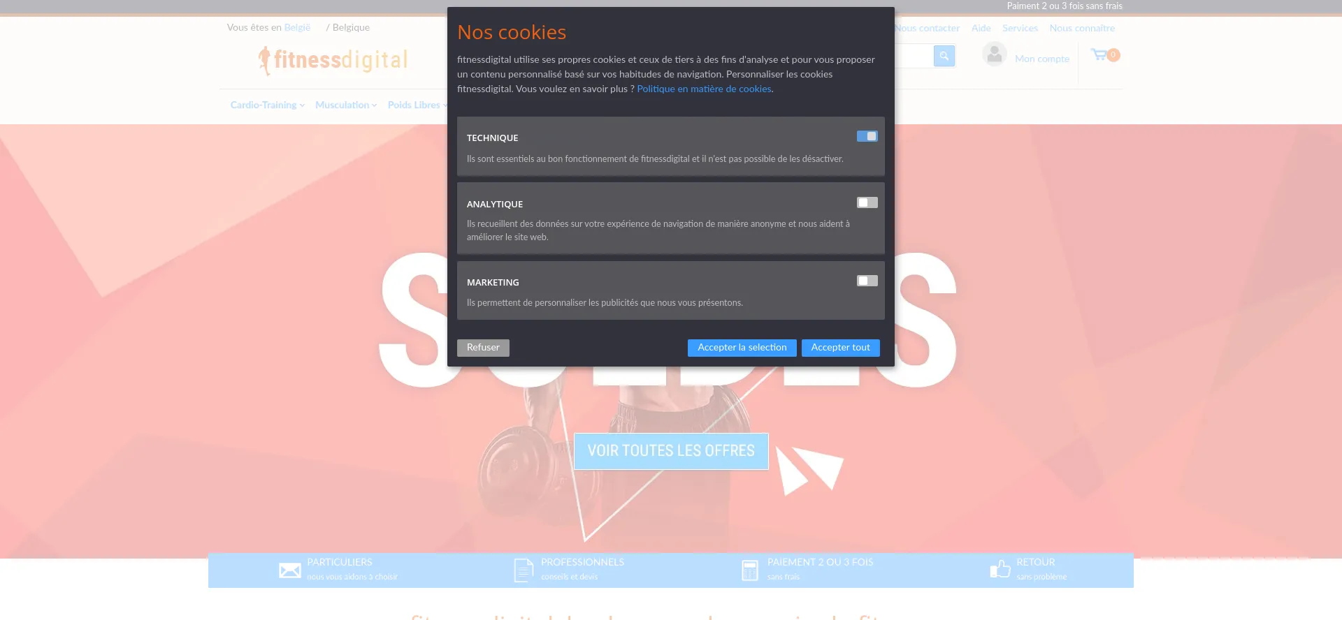 分析表明 fitnessdigital.be 作为电子商务平台运营,促进商品或服务的在线交易。该网站实现了购物车功能、支付处理系统和产品目录功能,这些是商业零售运营的典型特征。