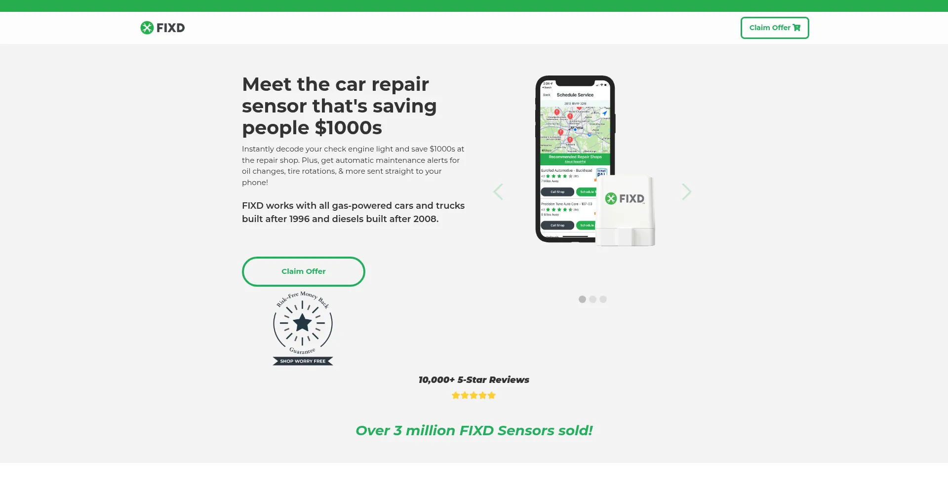 Instantly decode your check engine light and save $1000s at the repair shop. FIXD works with all gas-powered cars and trucks built after 1996 and diesels built after 2008.