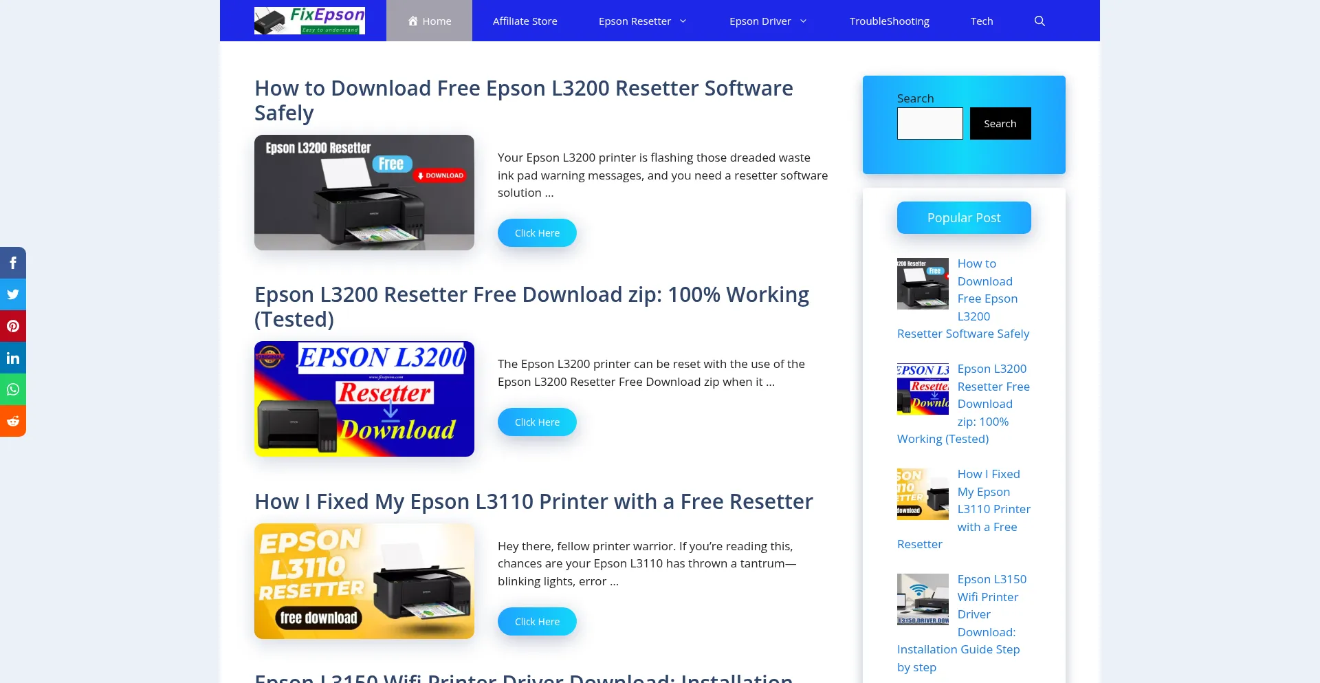 网站上存在社交媒体链接表明 fixepson.com 在社交媒体上维护官方账户,这是可信度和参与度的积极信号。