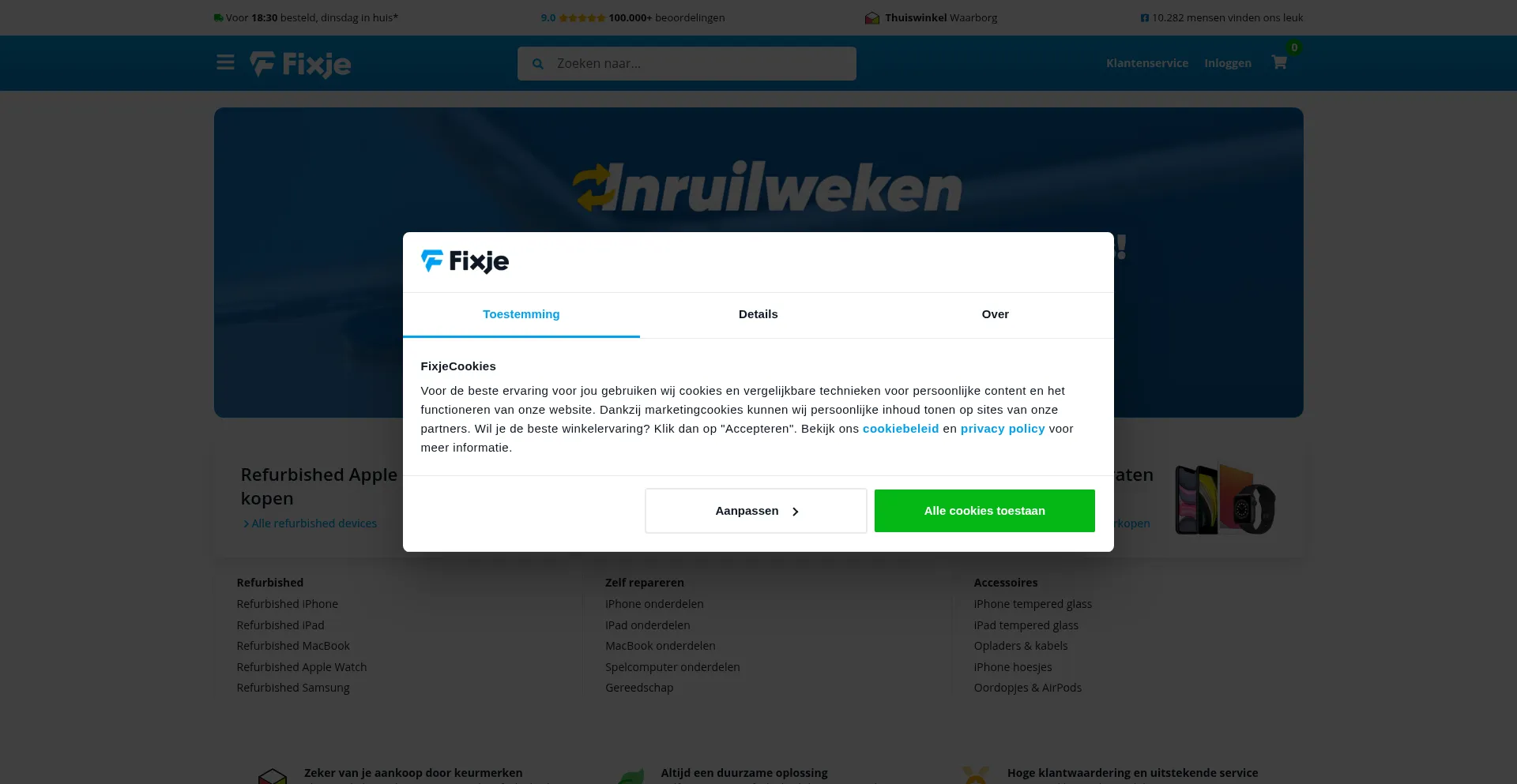该网站实现符合GDPR或CCPA等隐私法规的cookie同意机制。这表明 fixje.nl 遵守数据保护标准并为用户提供对个人数据收集实践的控制。