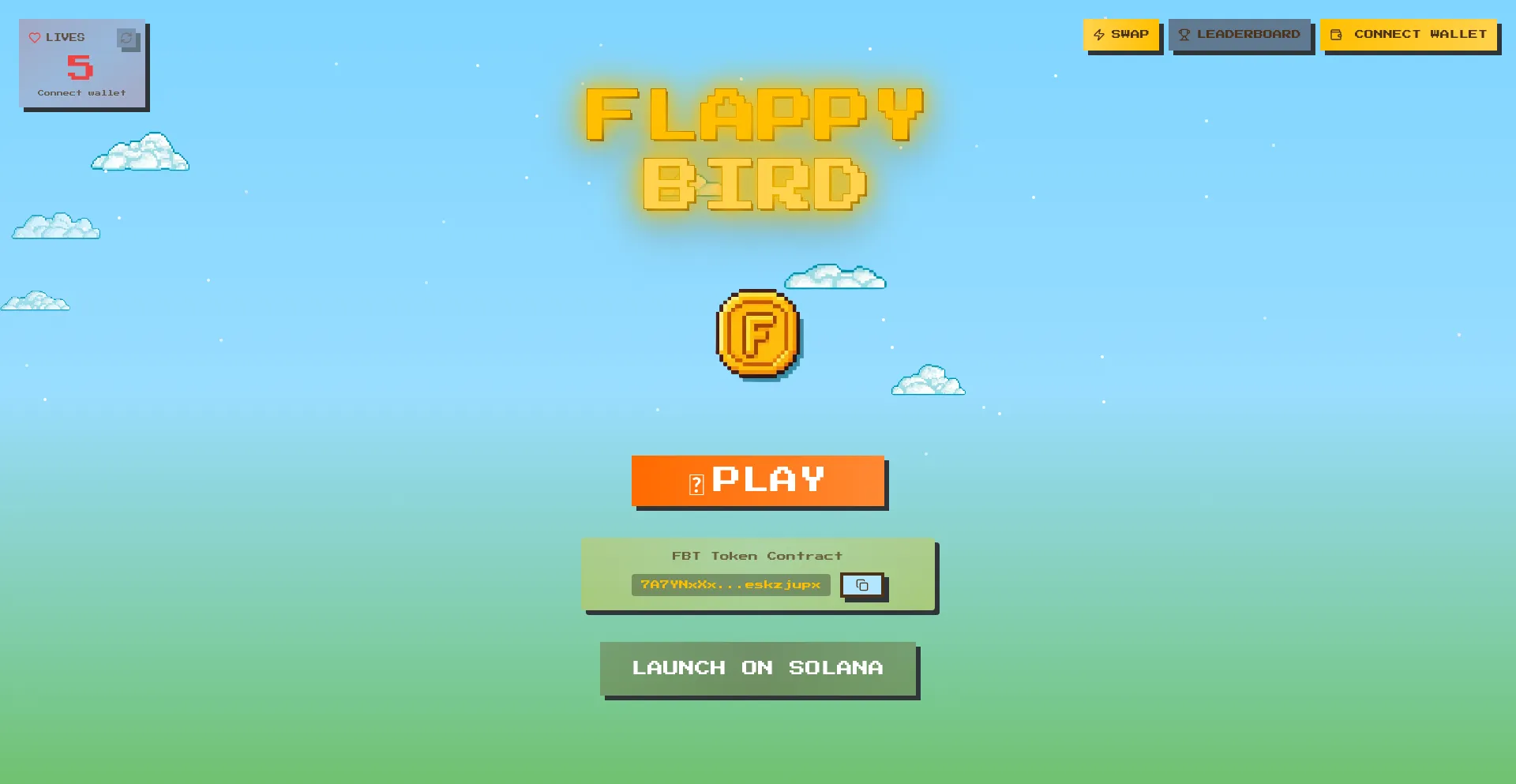 Play Flappy Bird and earn crypto rewards! Collect coins, compete for high scores, and get token incentives when we launch on Solana blockchain.