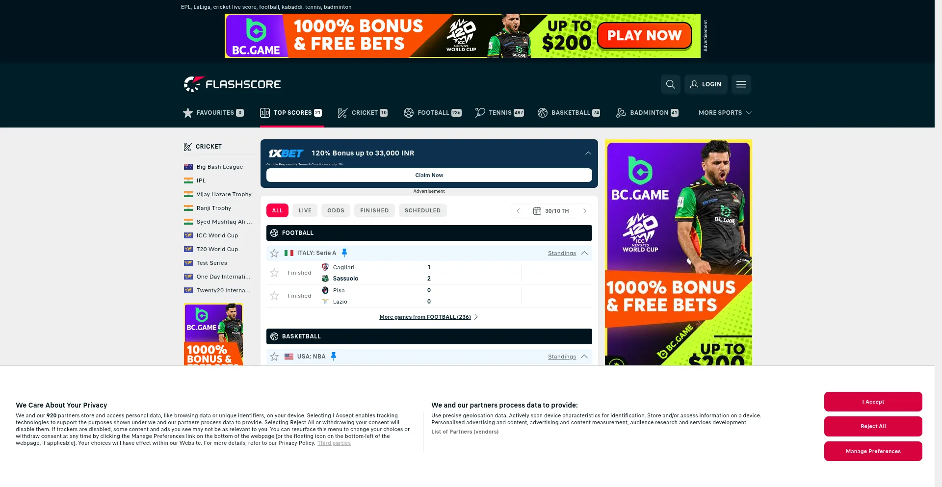 该网站实现符合GDPR或CCPA等隐私法规的cookie同意机制。这表明 flashscore.in 遵守数据保护标准并为用户提供对个人数据收集实践的控制。