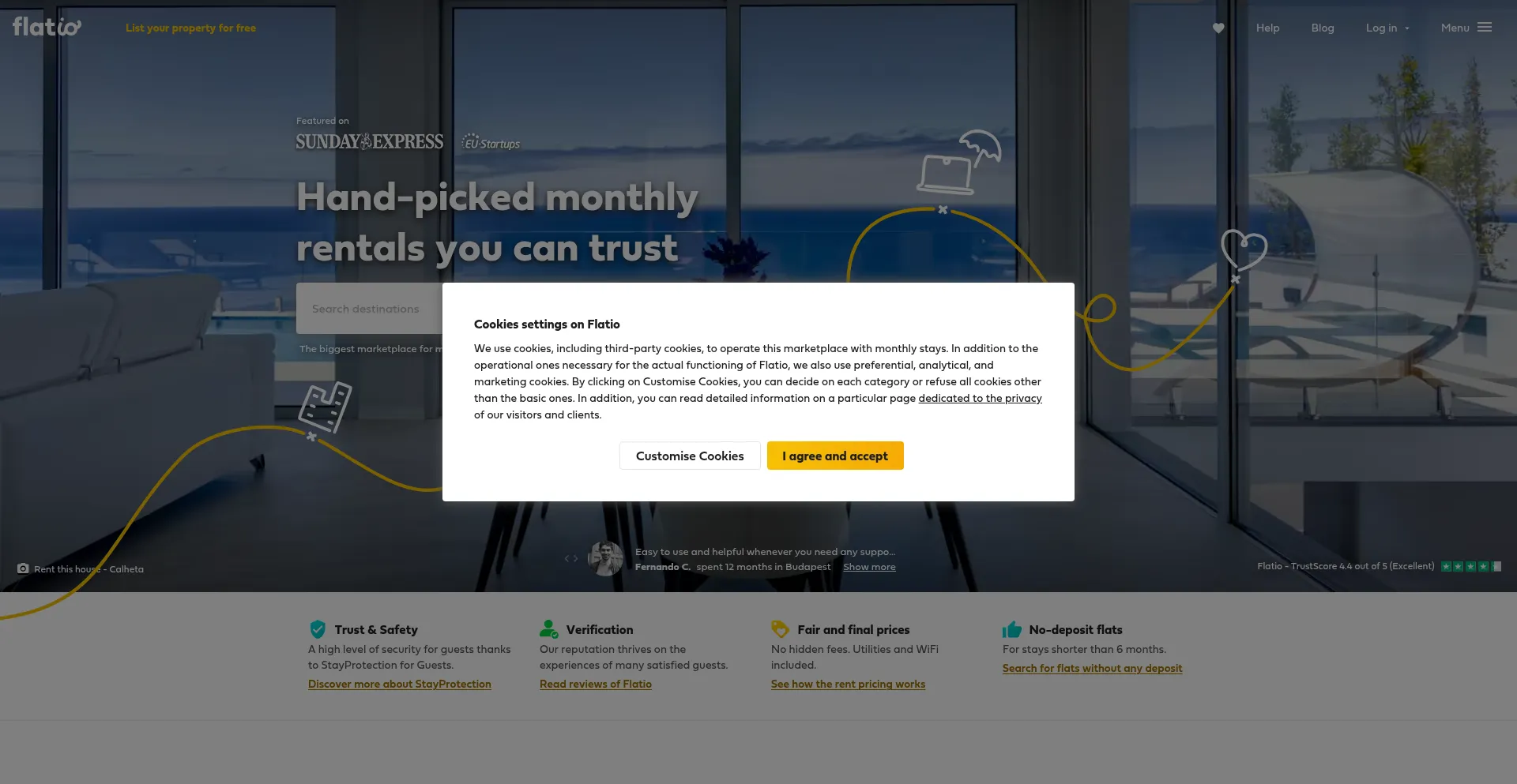 该网站实现符合GDPR或CCPA等隐私法规的cookie同意机制。这表明 flatio.com 遵守数据保护标准并为用户提供对个人数据收集实践的控制。