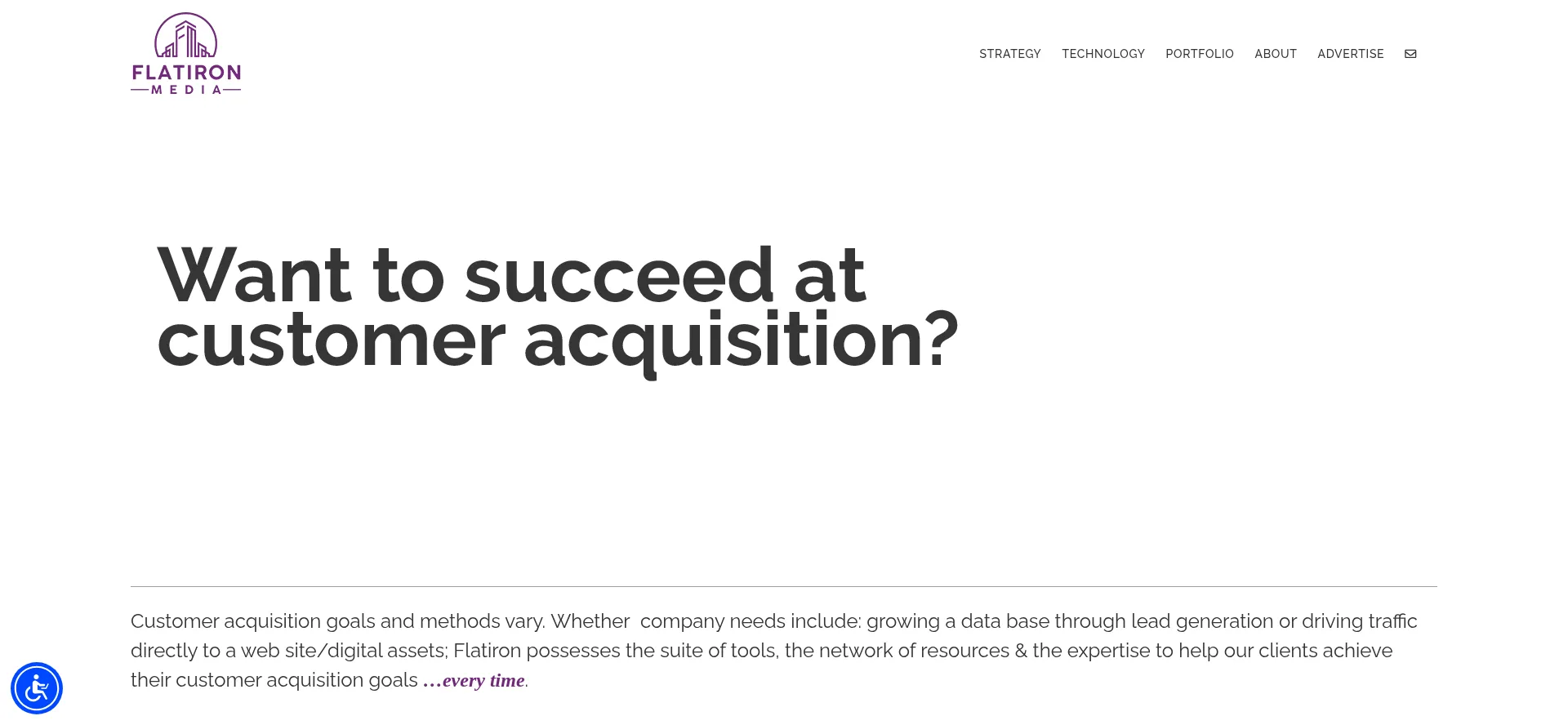 A full-service customer acquisition company with a portfolio of channels including: lead generation, e-mail, push, SMS, newsletters and display advertising.
