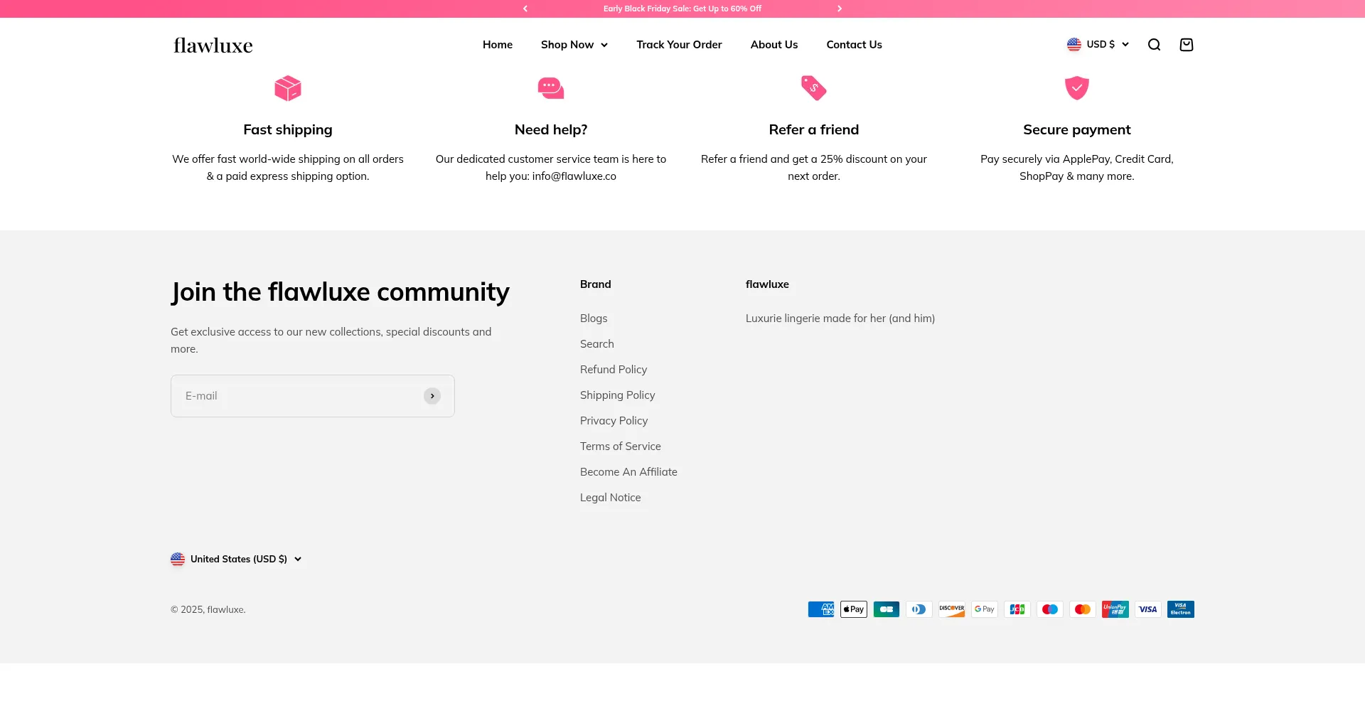分析表明 flawluxe.co 作为电子商务平台运营,促进商品或服务的在线交易。该网站实现了购物车功能、支付处理系统和产品目录功能,这些是商业零售运营的典型特征。