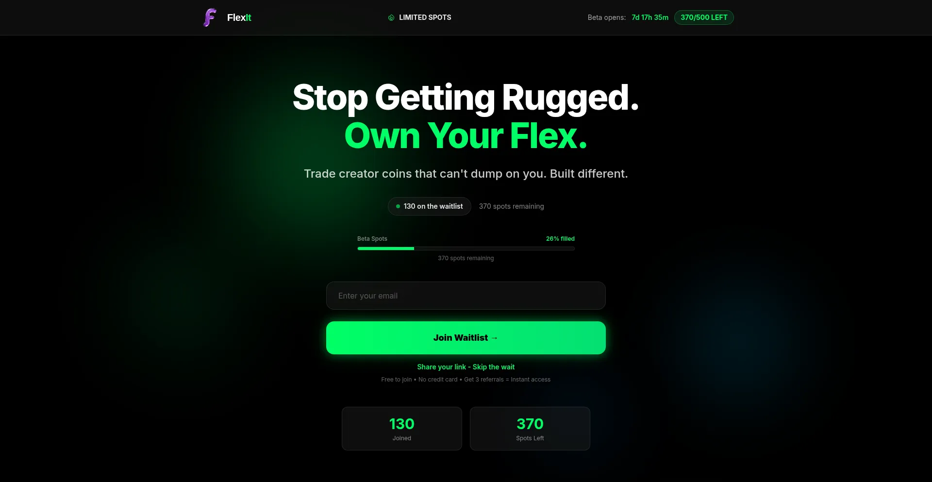 Join the anti-rug SocialFi revolution on Solana. FlexIt turns every post into a tradable coin and every creator into an asset. Built different.