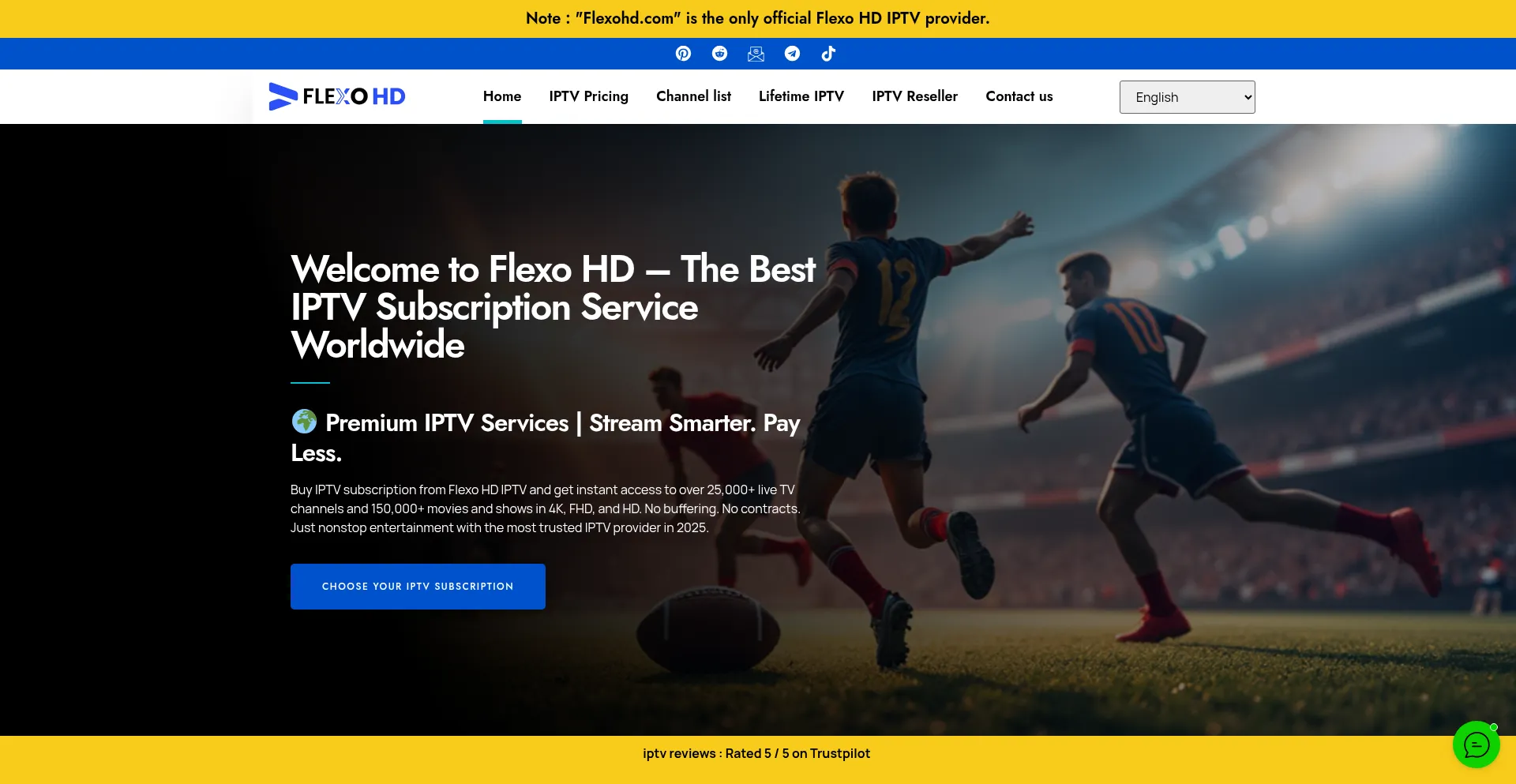Buy the best IPTV subscription from FlexoHD. Enjoy 30,000+ channels, 250,000+ movies & series in 4K. Instant delivery, no buffering, 24/7 support.