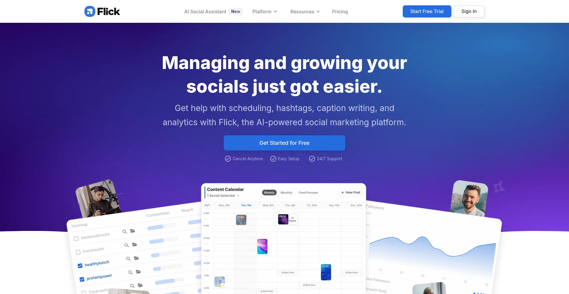The tools you need to grow and manage your Socials: Scheduling, Hashtags, AI Content Writing & Analytics. Built for business owners and marketers. 7-Day Free Trial.