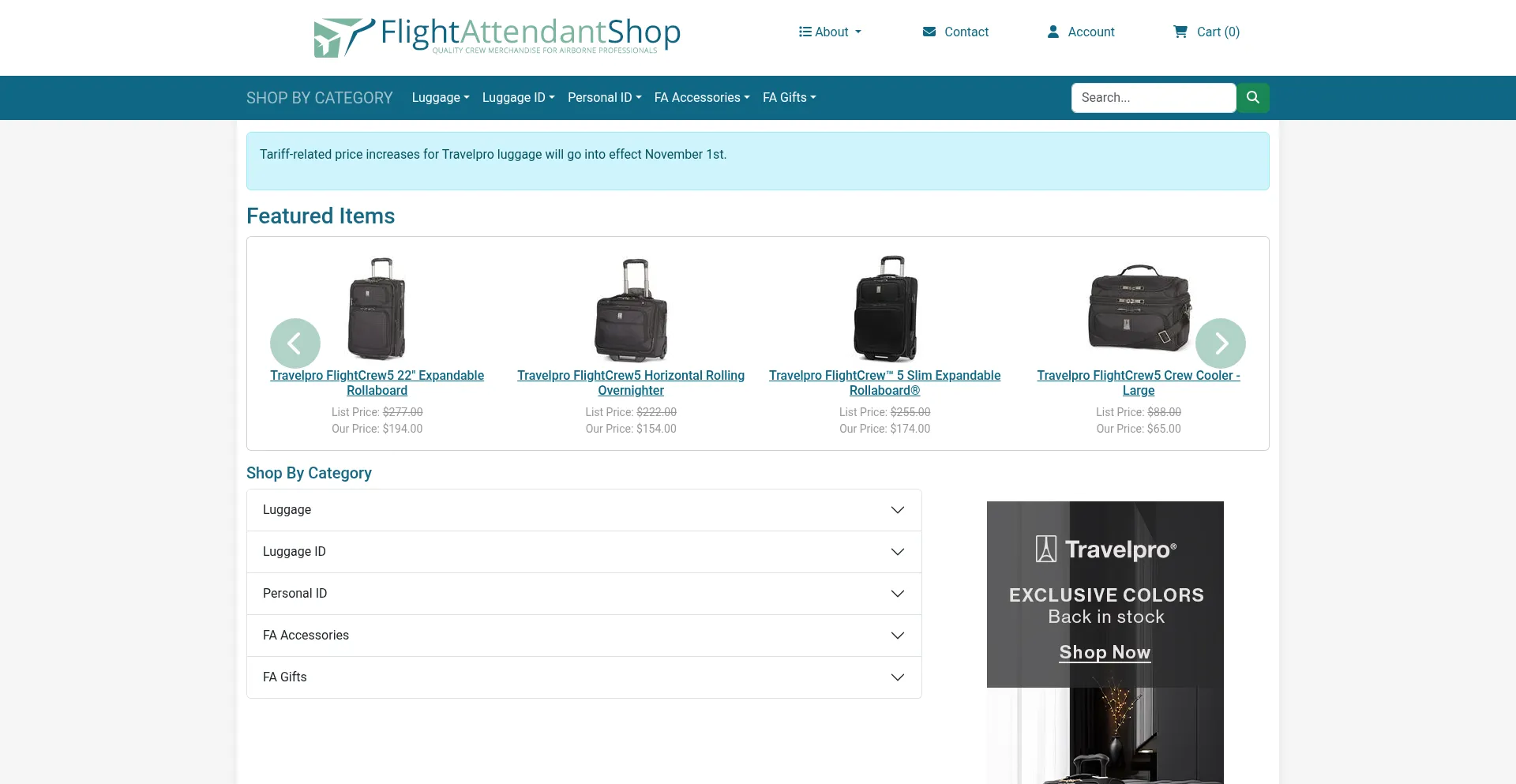 The Flight Attendant Shop is a discount retailer of flight crew luggage, accessories, and gifts. Get flight attendant gear like rolling luggage, tote bags, coolers, lanyards, lu...