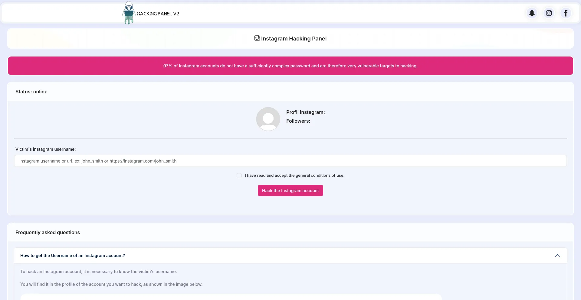 97% of Instagram accounts do not have a sufficiently complex password and are therefore very vulnerable targets to hacking.